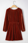 Clay Elastic V Neck Puff Sleeve Short Velvet Dress