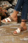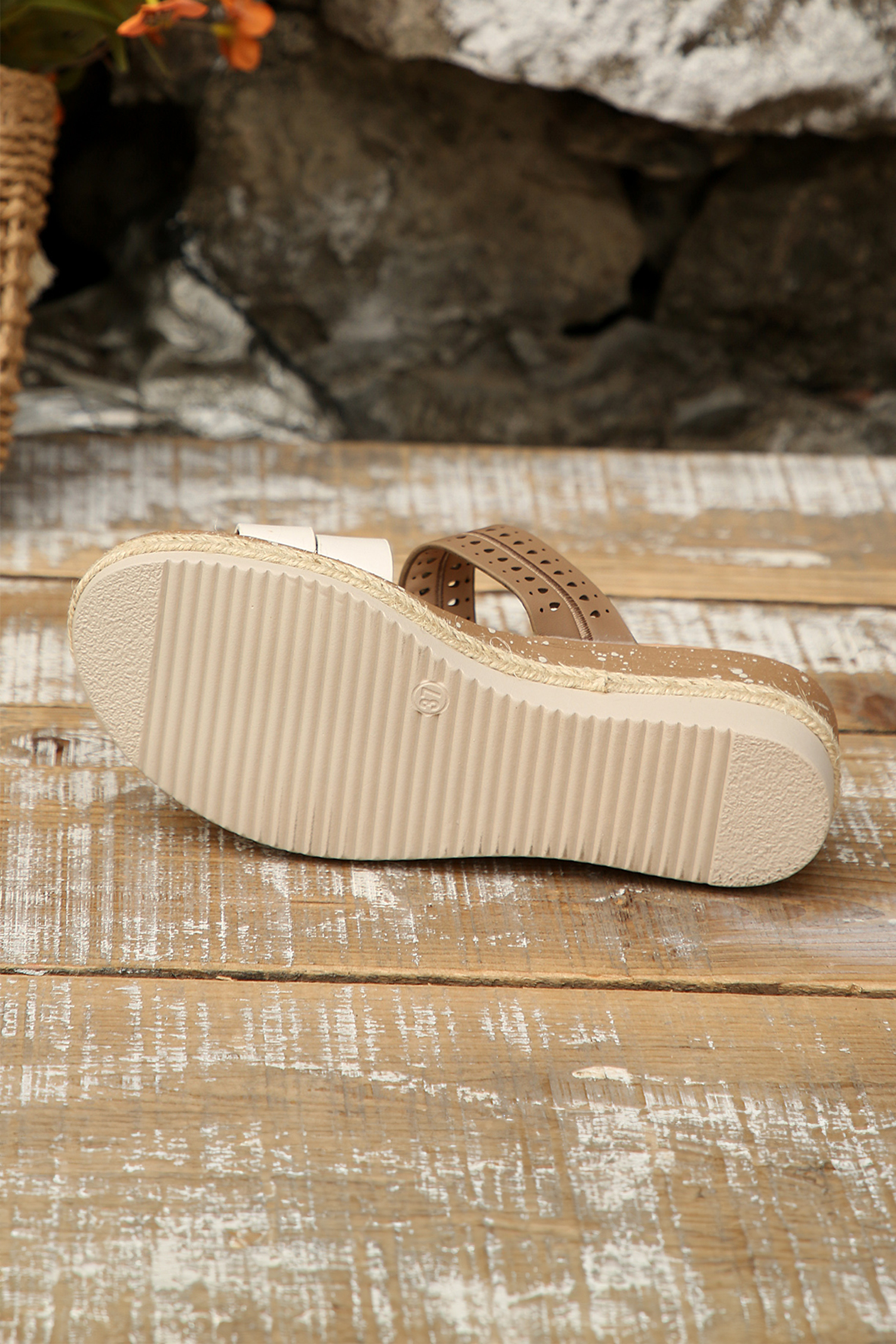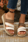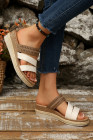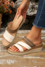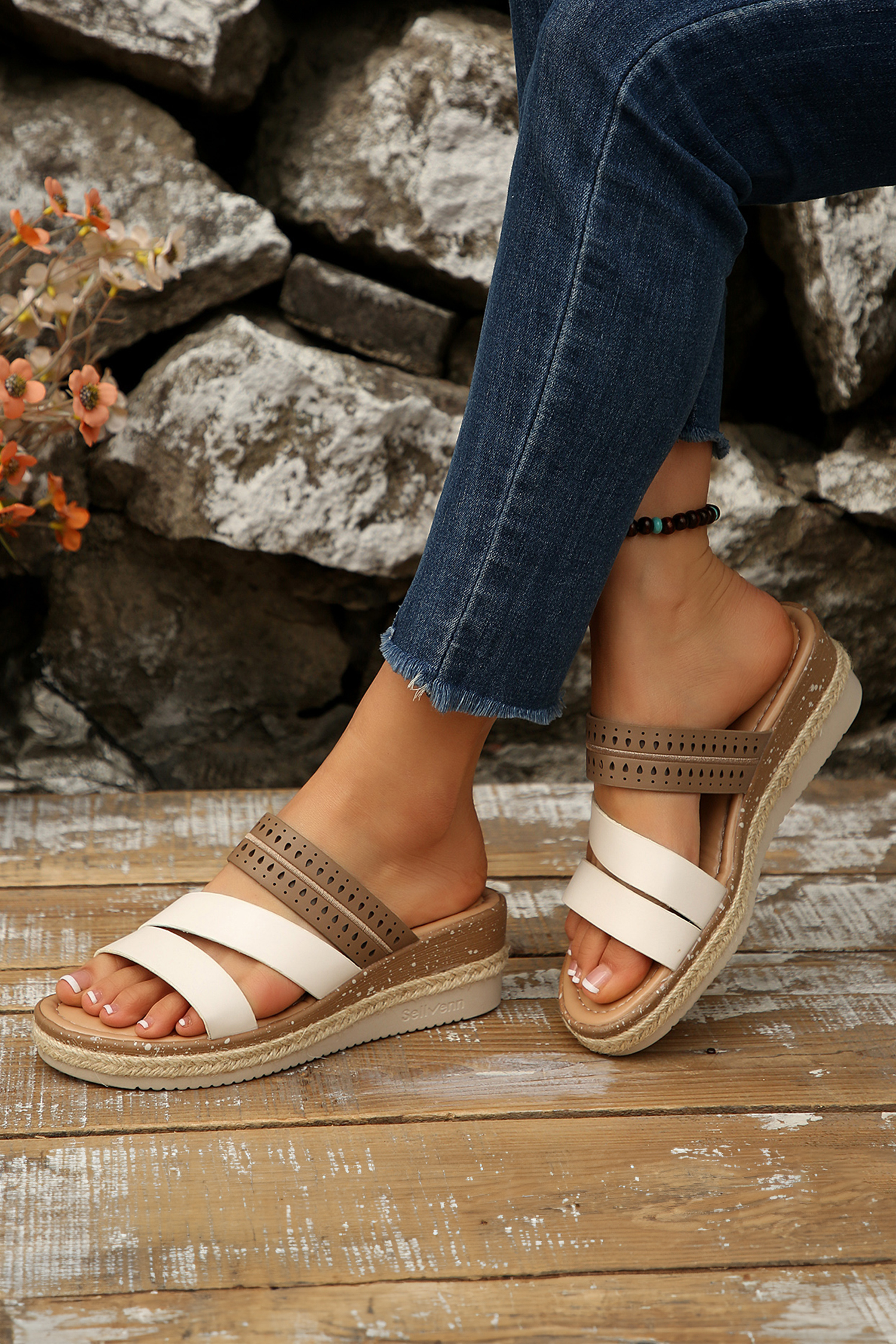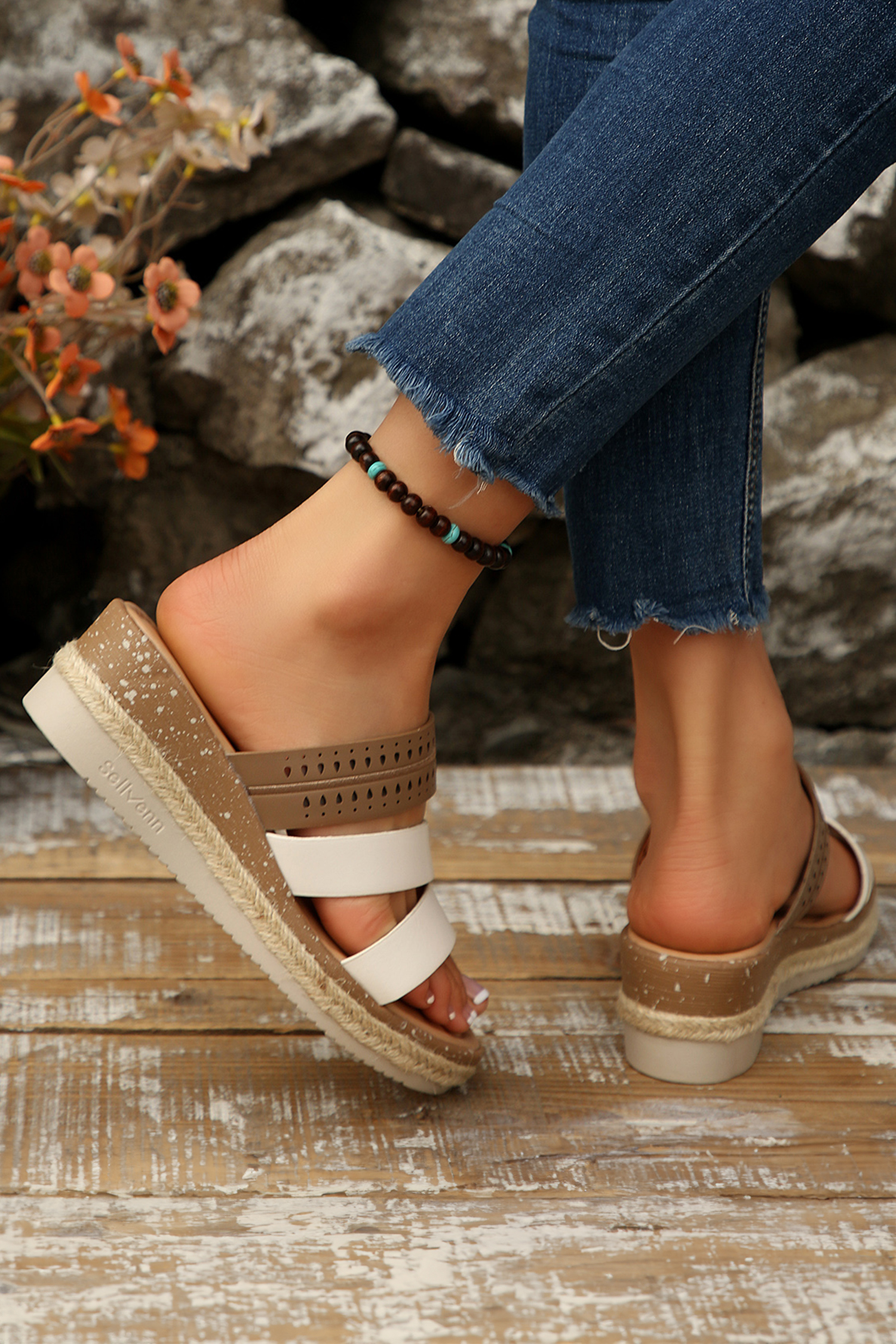 Coffee Hollowed Detail Color Block Straps Platform Wedge Slippers