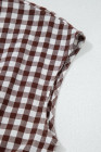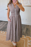 Coffee Plaid Print Full Zipper Cinched Waist Fit Flare Sleeveless Maxi Dress