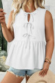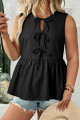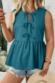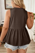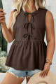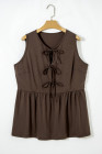 Coffee Plus Size Solid Color Bow Tie Peplum Tank Top
