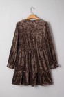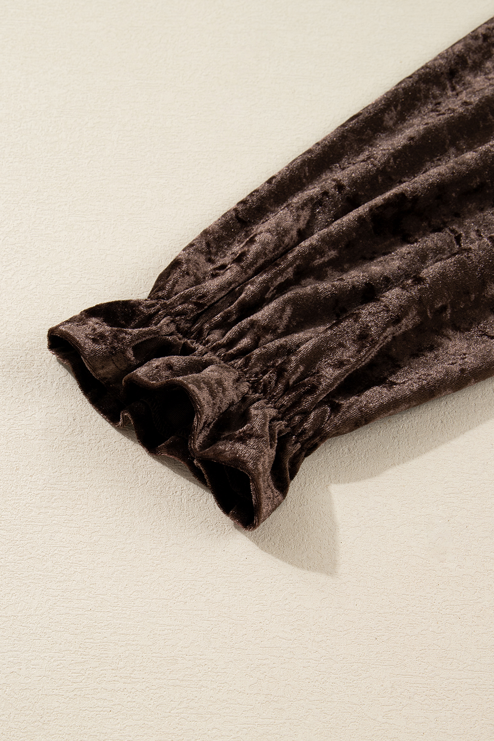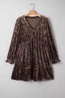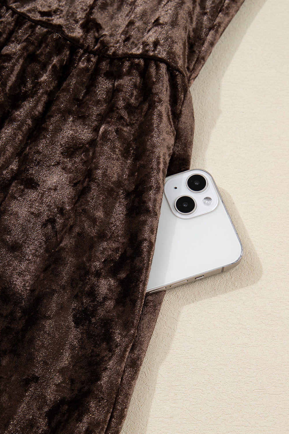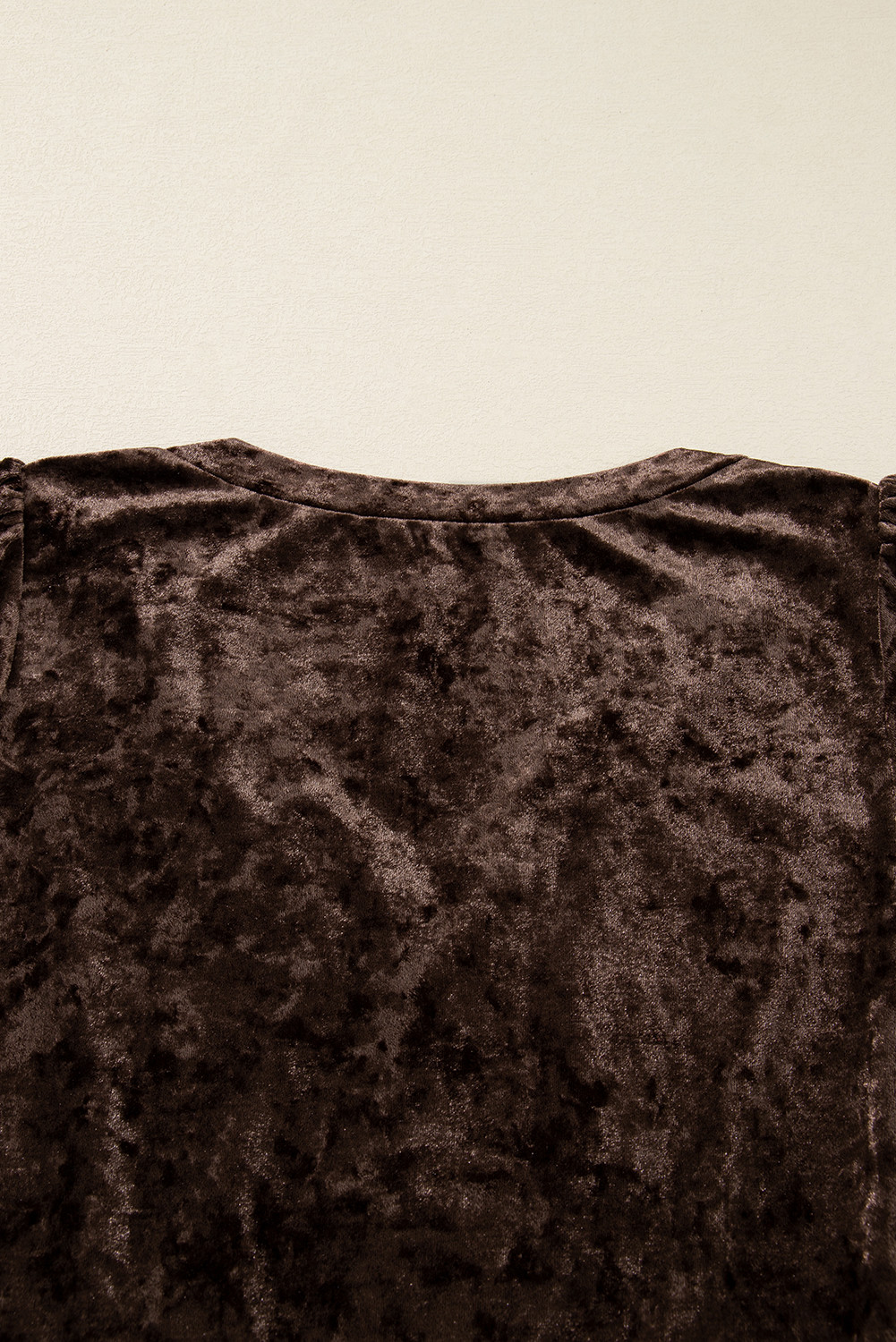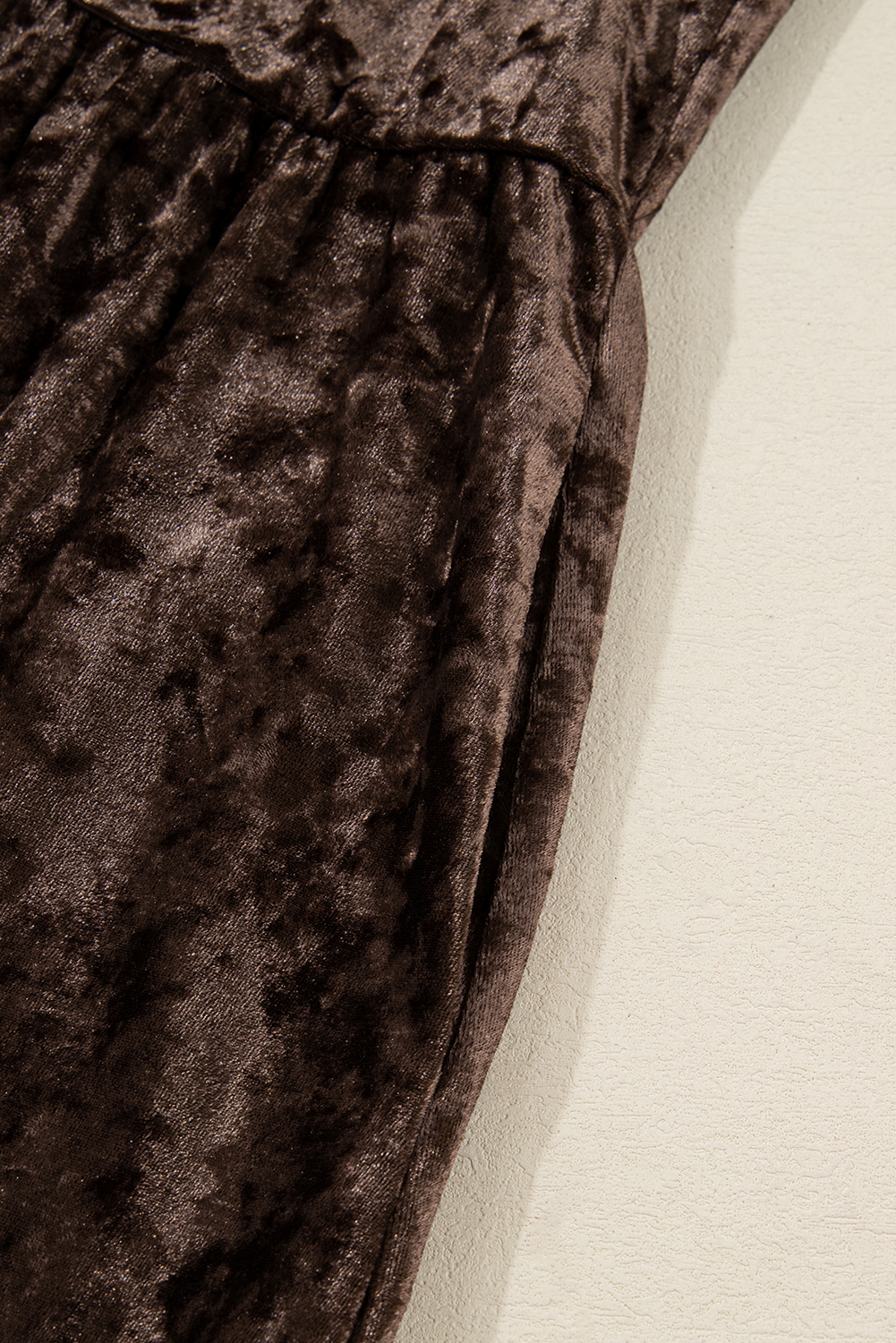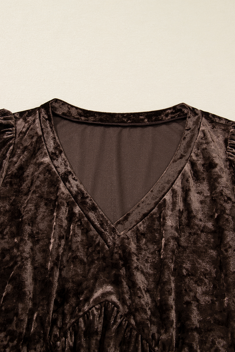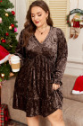 Coffee Plus Size Velvet Babydoll Mini Dress with Puff Sleeve