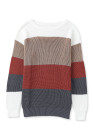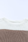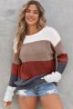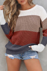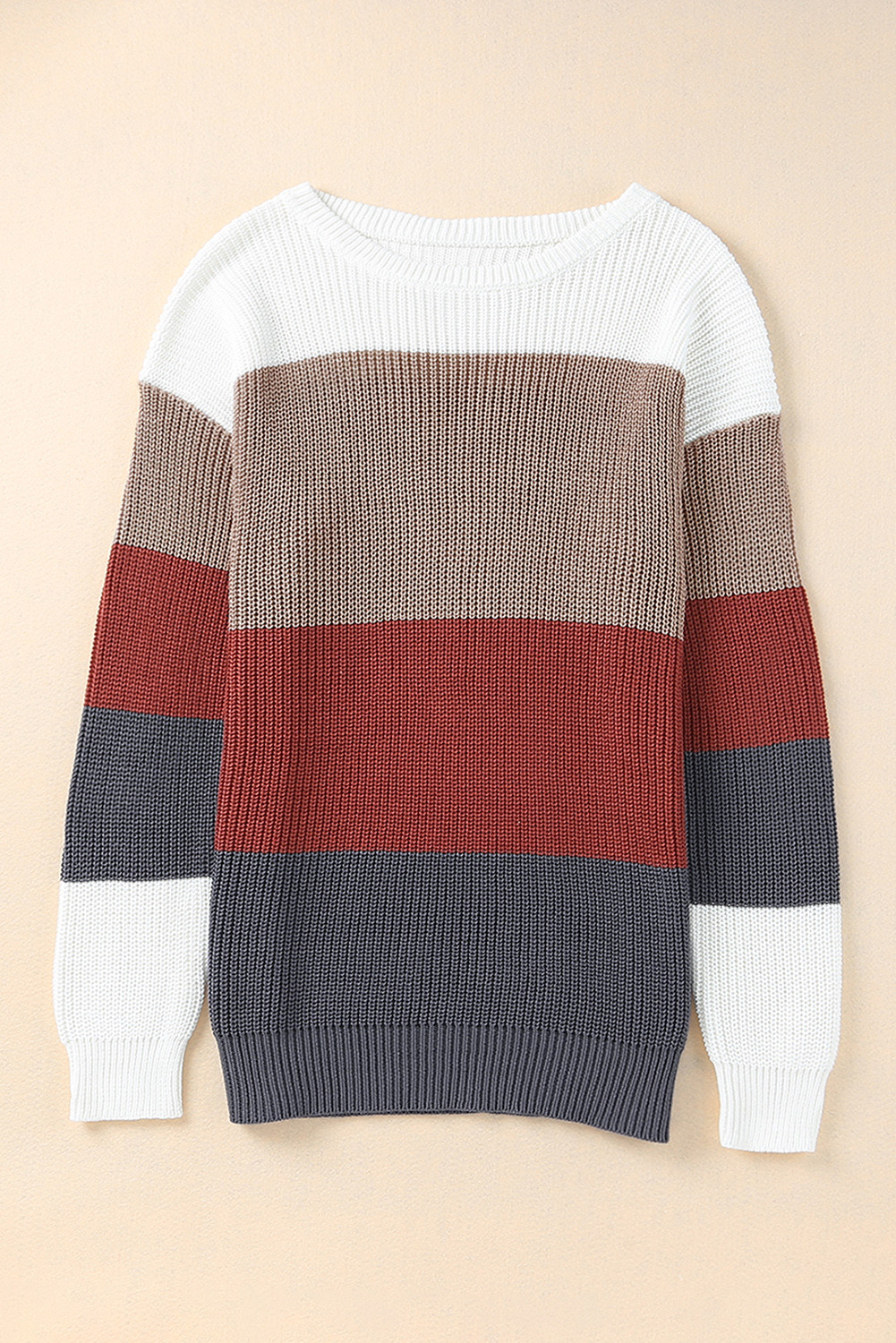 This color block knitted O-neck pullover sweater is stylish and cozy.