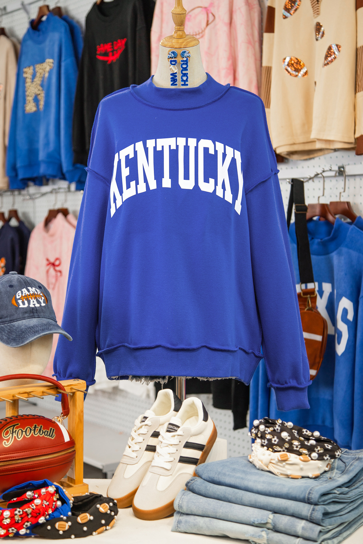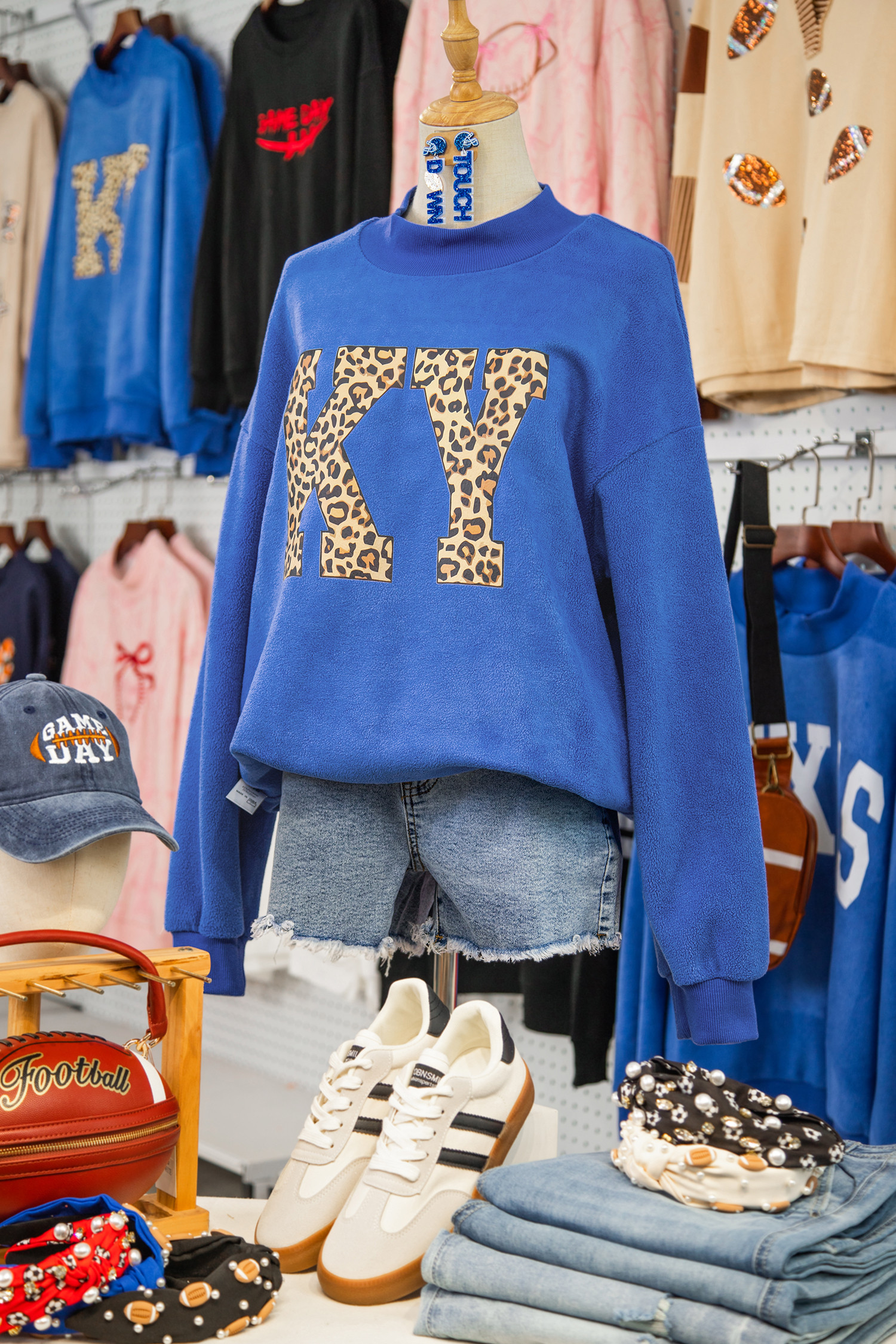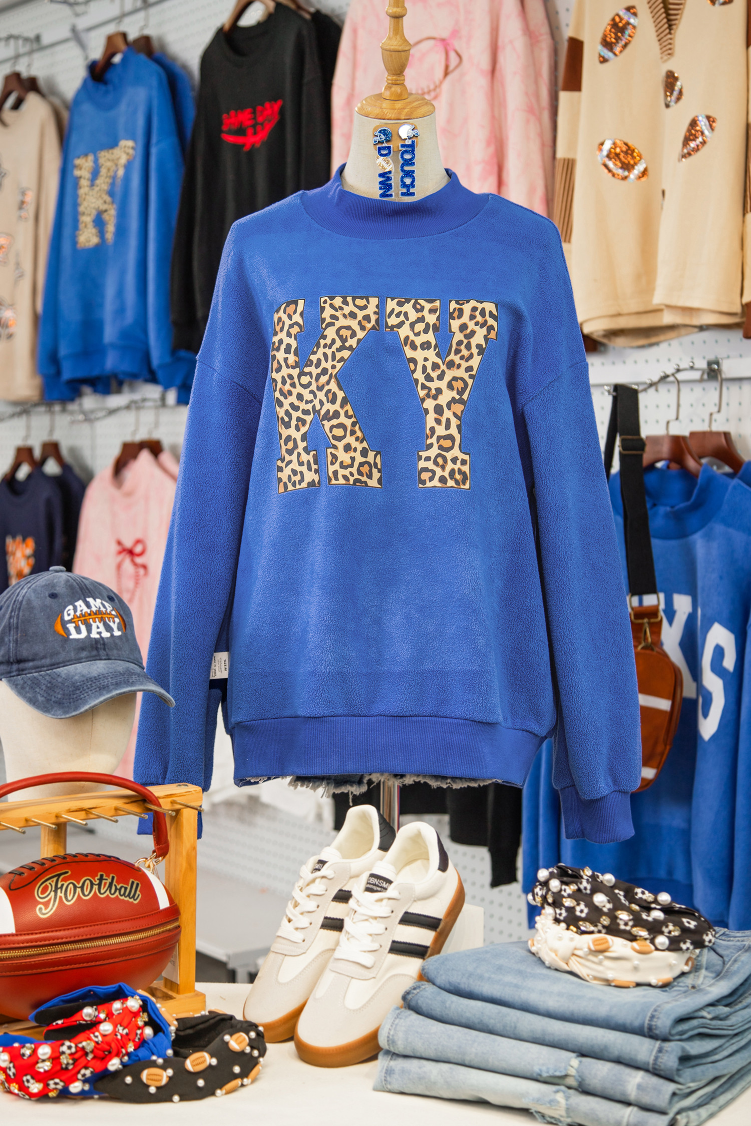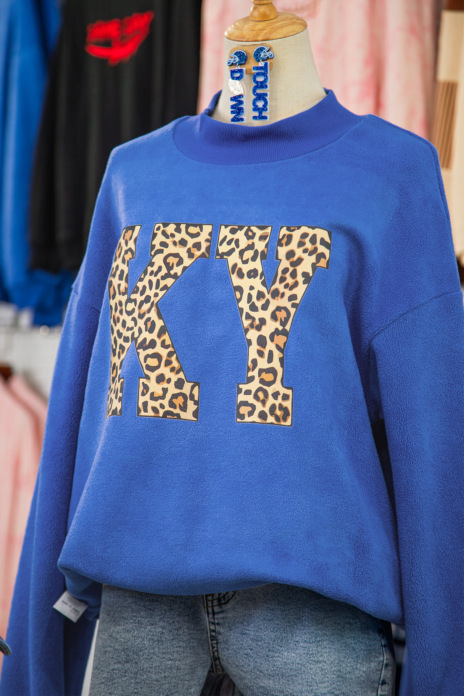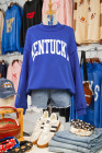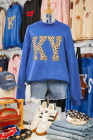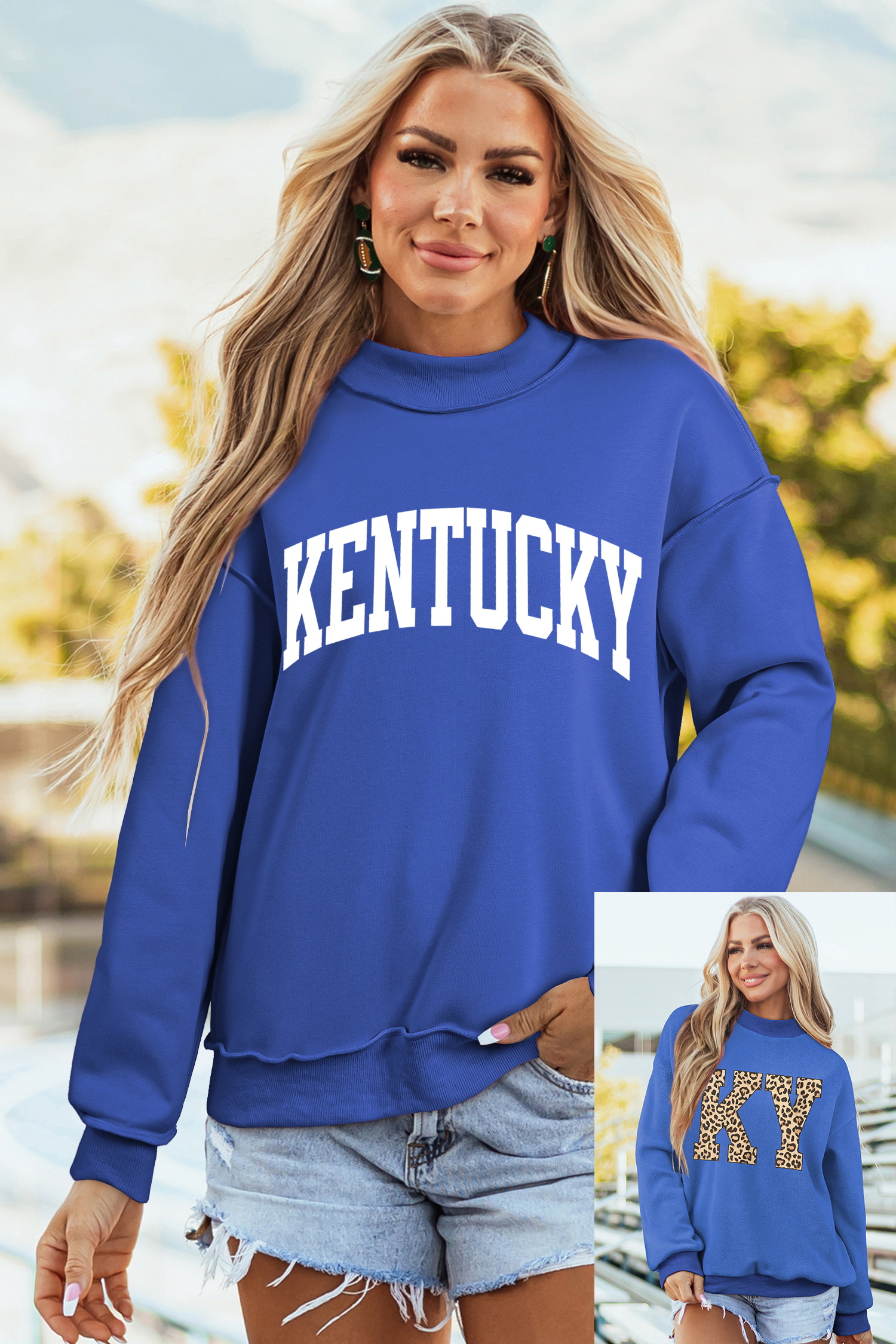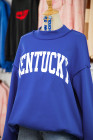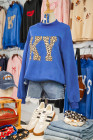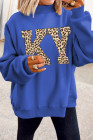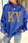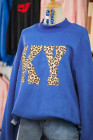 Dark Blue KENTUCKY Leopard KY Letter Print Reversible High Neck Sweatshirt