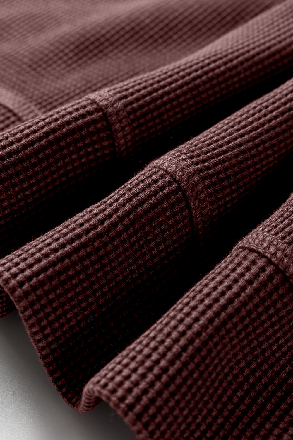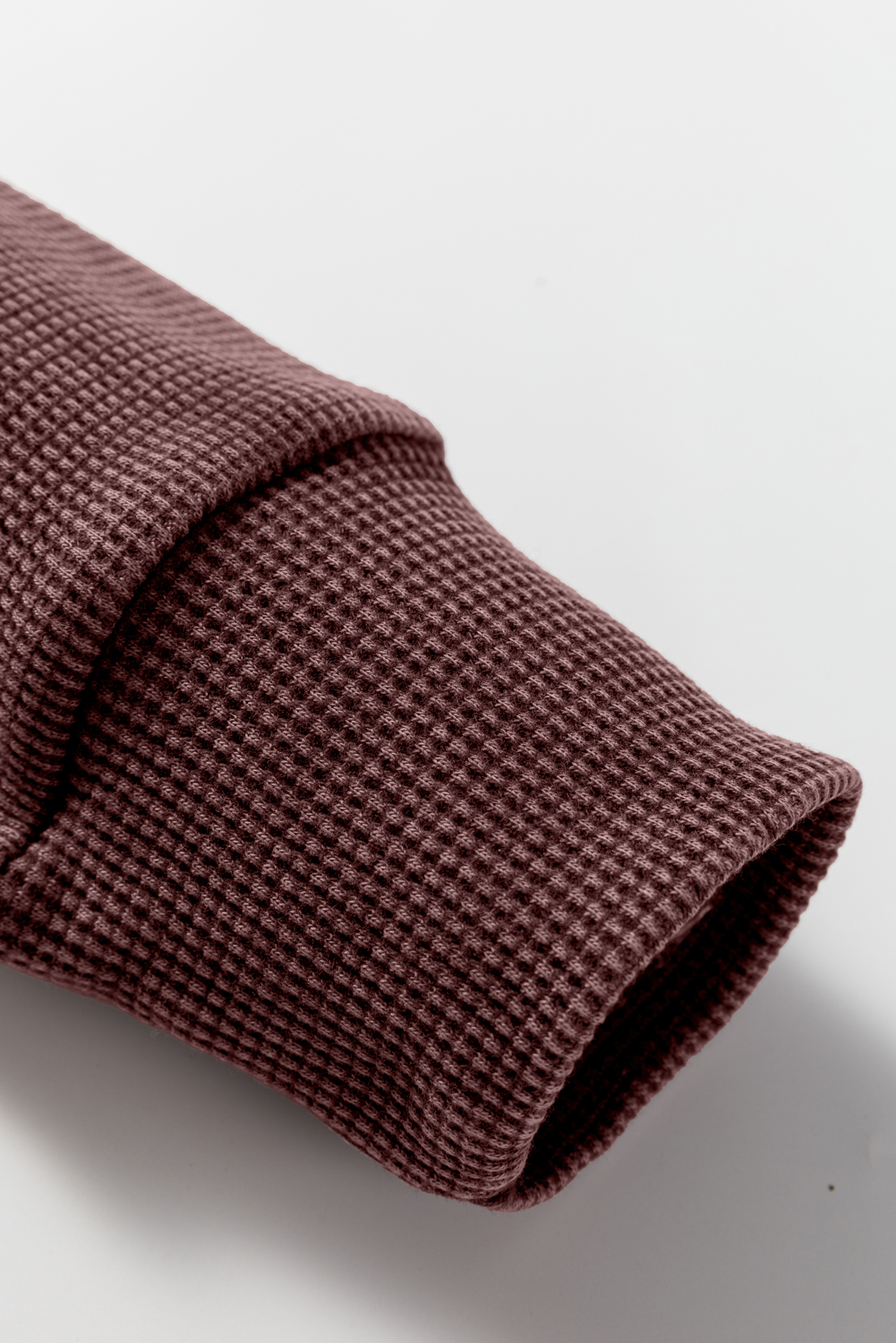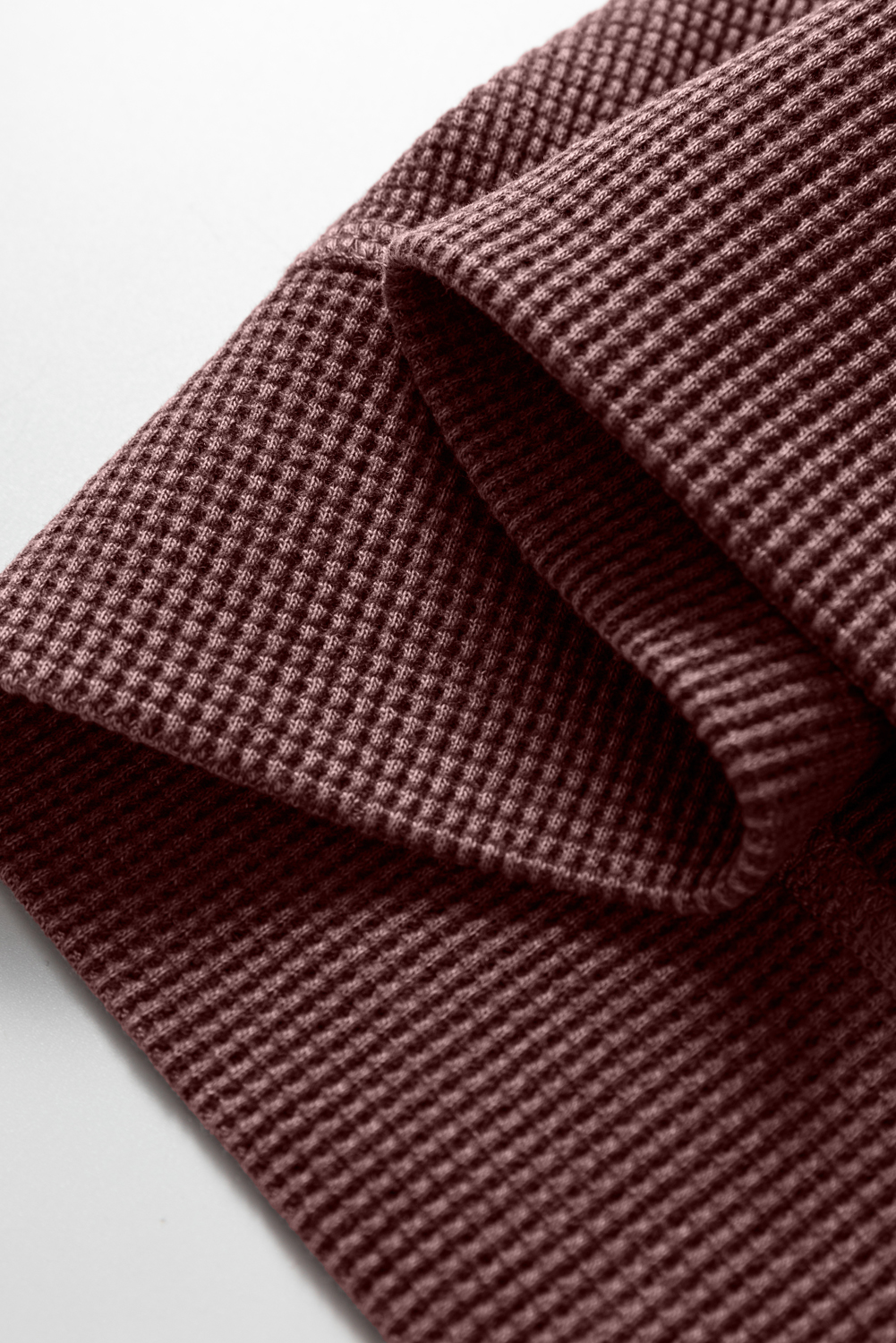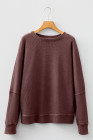 Dark Brown Waffle Knit Patchwork Long Sleeve Loose Top