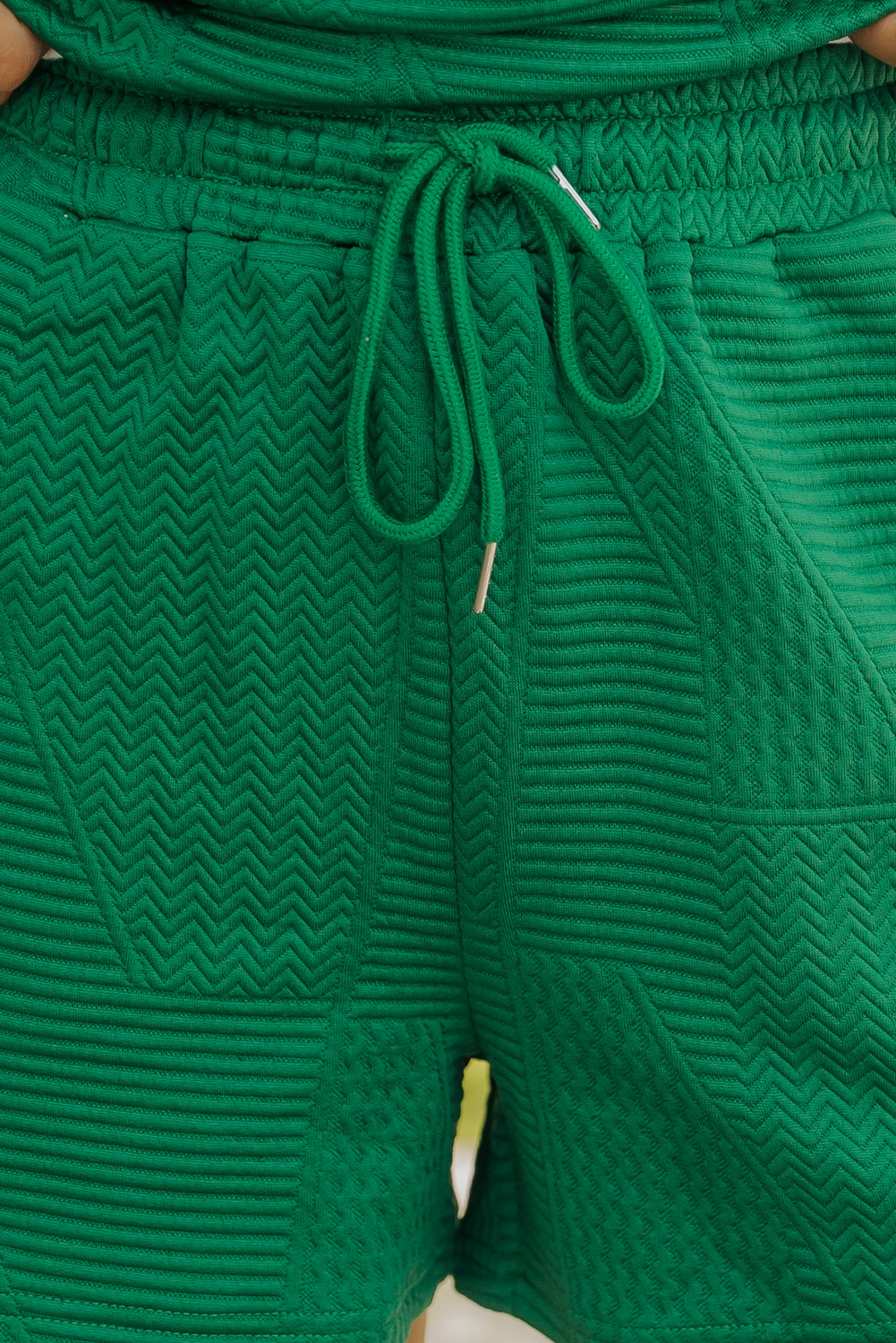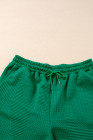 Dark Green Textured Ruffle Split Top and Drawstring Shorts