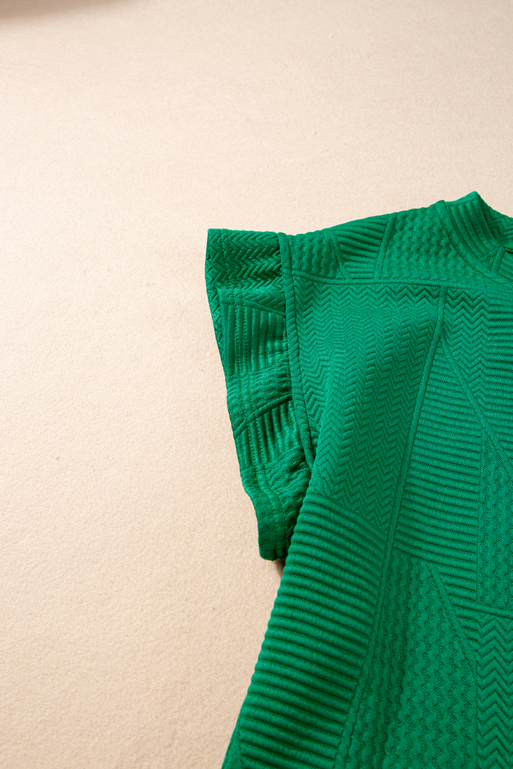 The Dark Green Textured Ruffle Split Top and Drawstring Shorts set is stylish and versatile.