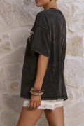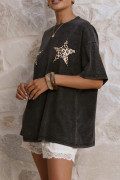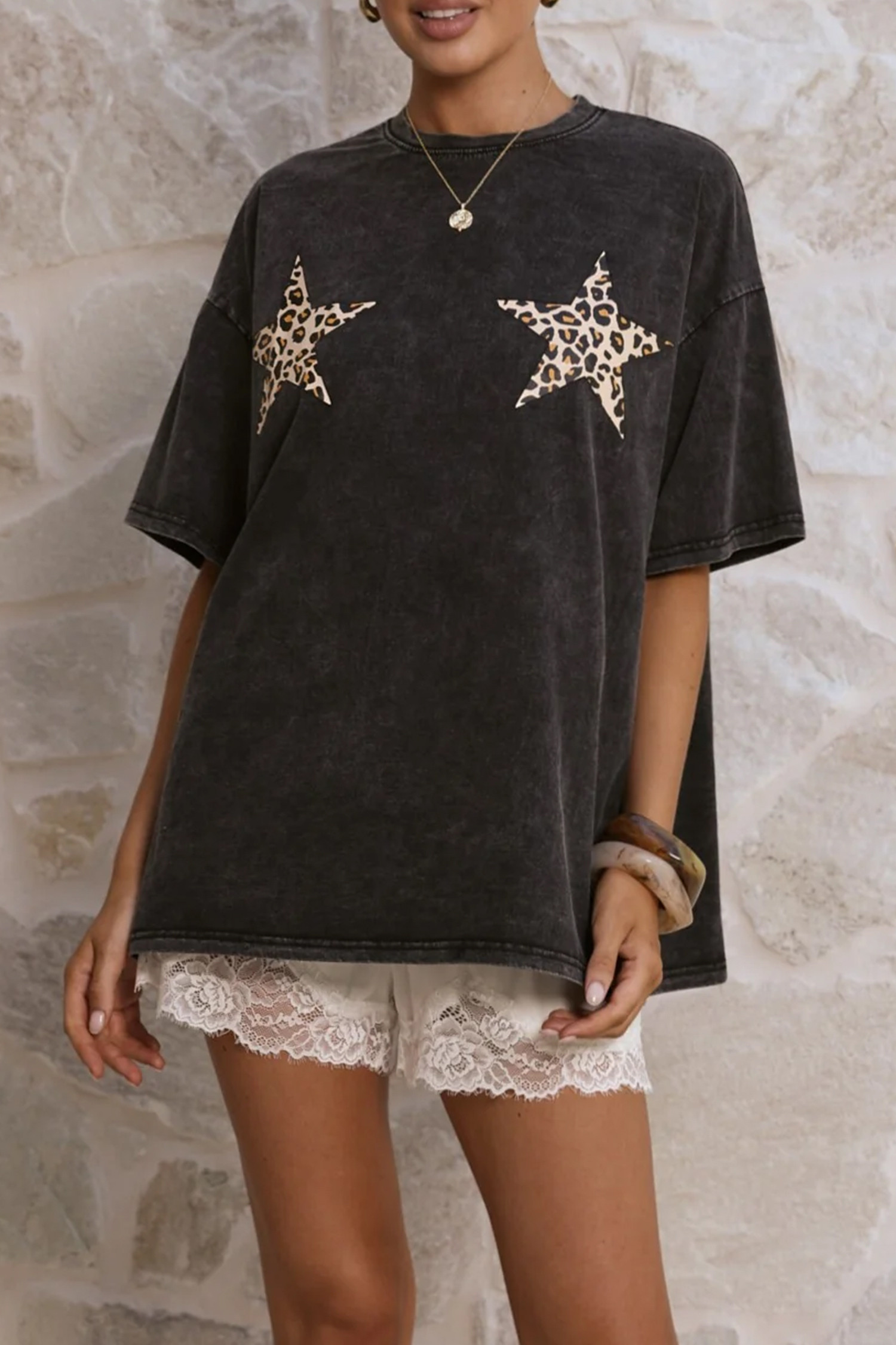 Dark Grey Leopard Star Printed Mineral Wash Oversize Tee