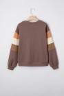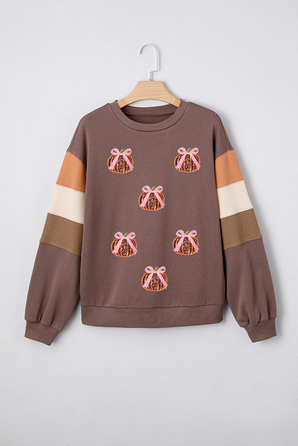 Dark Khaki Color Block Patchwork Sequin Bow Pumpkin Graphic Sweatshirt