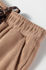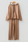 Dark Khaki Leopard Drawstring Pullover Hoodie and High Waist Pants Corduroy Suit