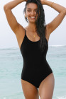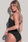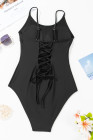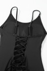 Dearlove Black Thin Strap Strappy Lace-up Open Back One Piece Swimsuit