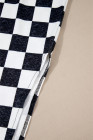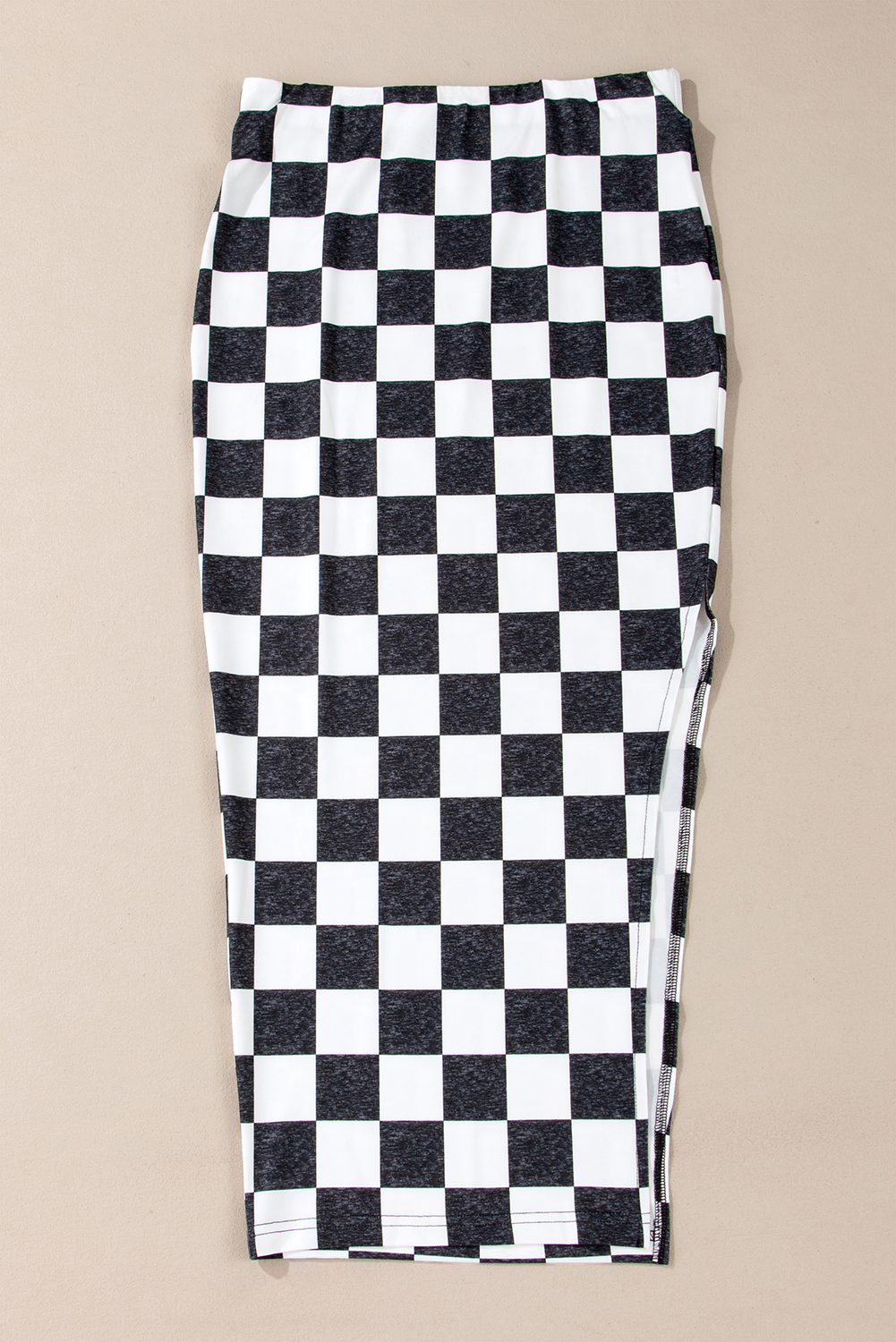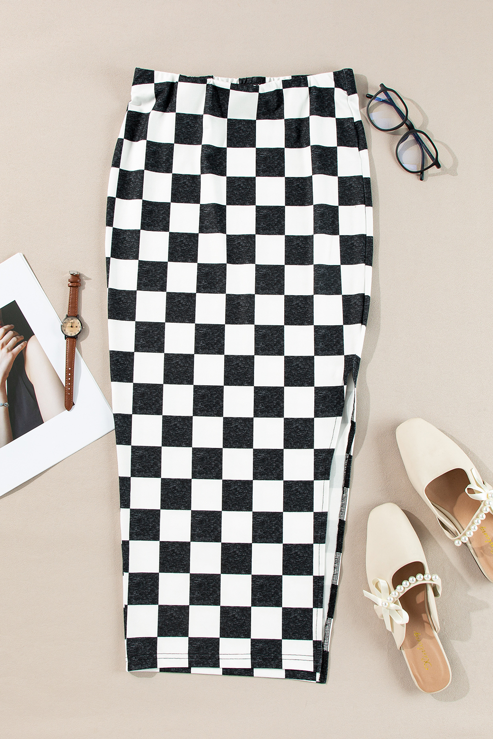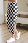 Dearlovers White Checkered Print Side Slit High Waist Midi Skirt
