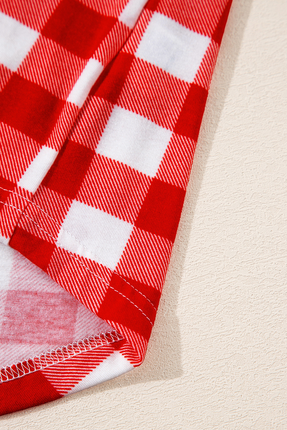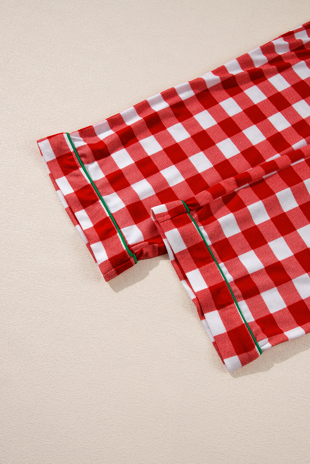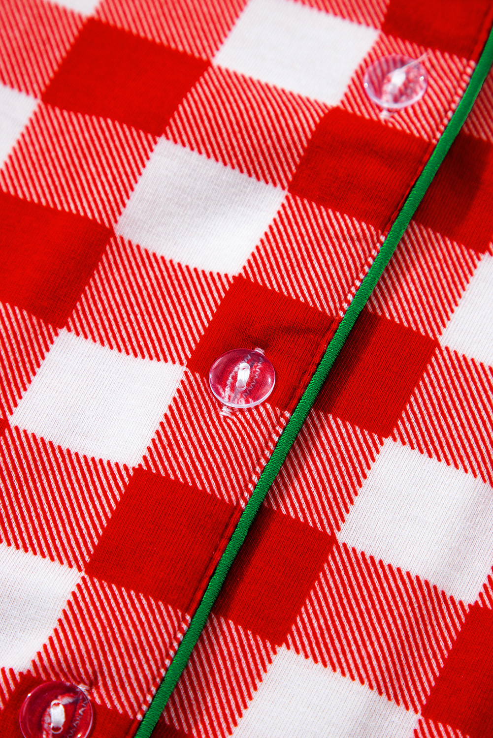 Fiery Red Christmas Plaid Print Shirt and Pants Pajama Set