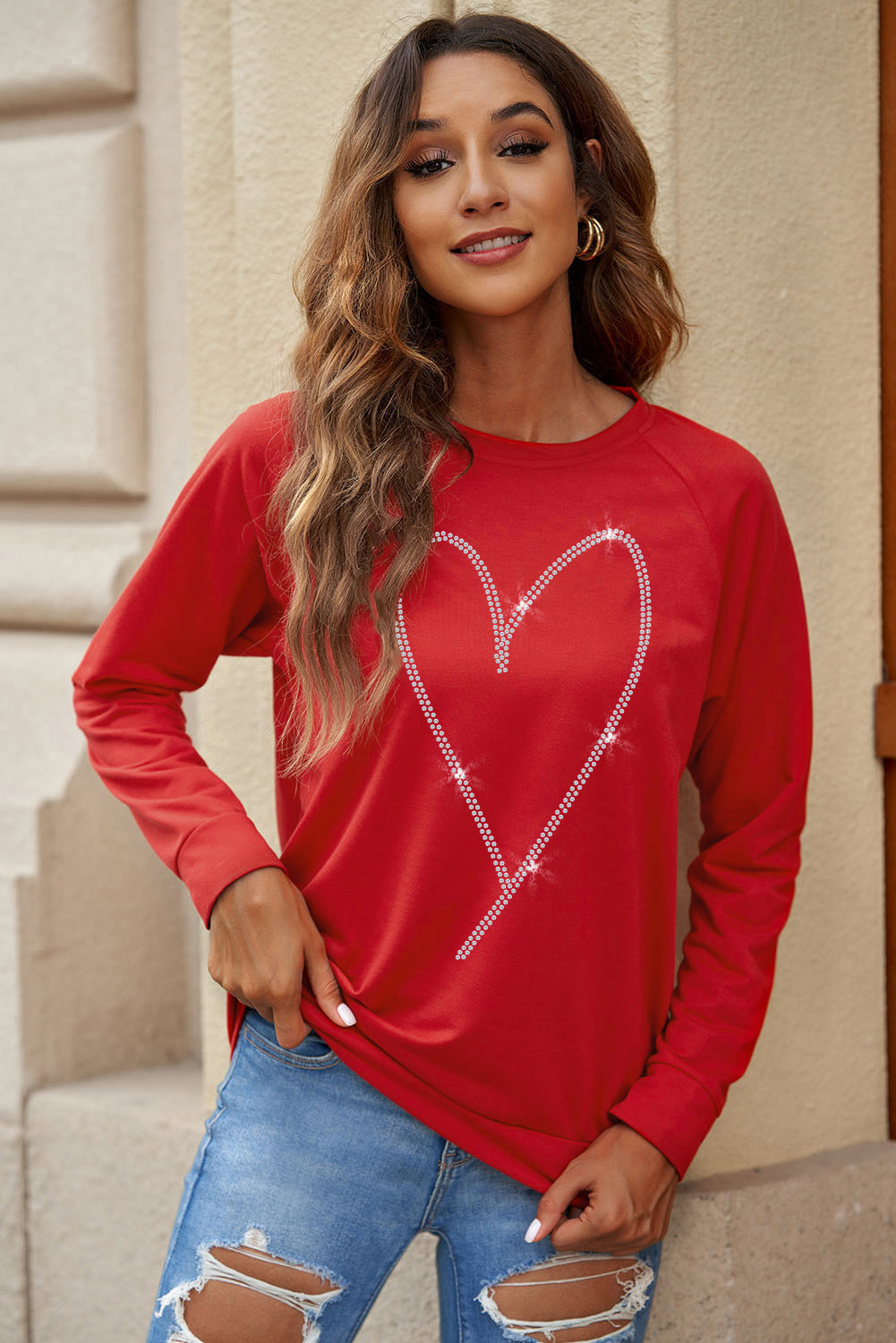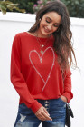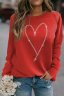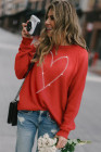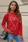 Fiery Red Rhinestone Heart Shaped Long Sleeve Sweatshirt