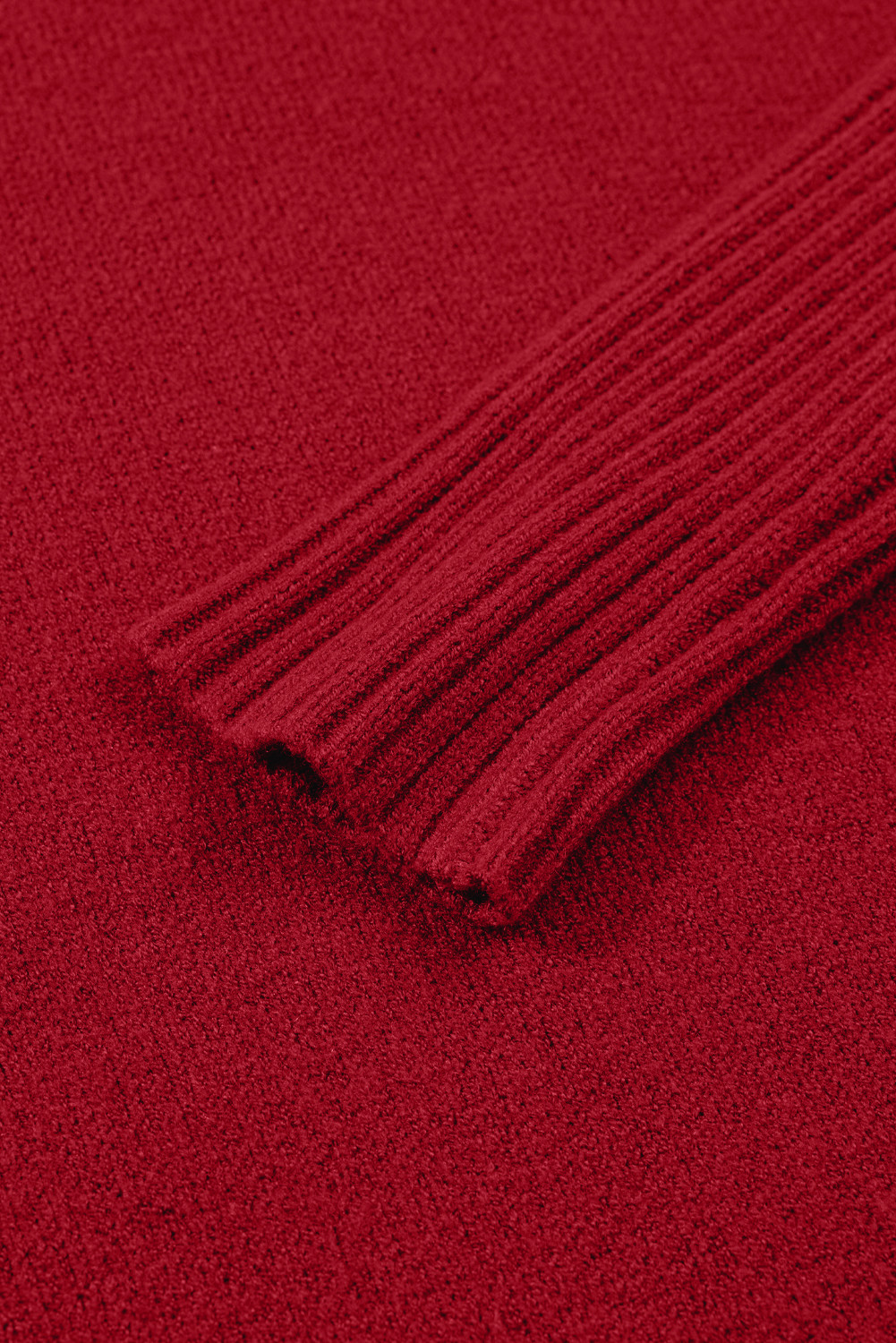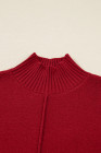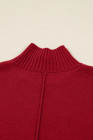 Fiery Red Ribbed High Neck Front Pockets Center Seam Shift Sweater Dress