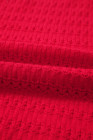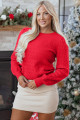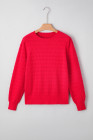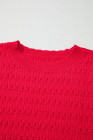 Fiery Red Trendy Pattern Knit Ribbed Cuffs Crew Neck Sweater