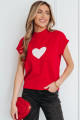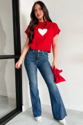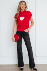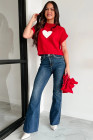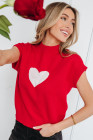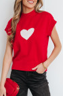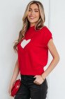 Fiery Red Valentine Heart Graphic Cropped Short Sleeve Sweater