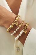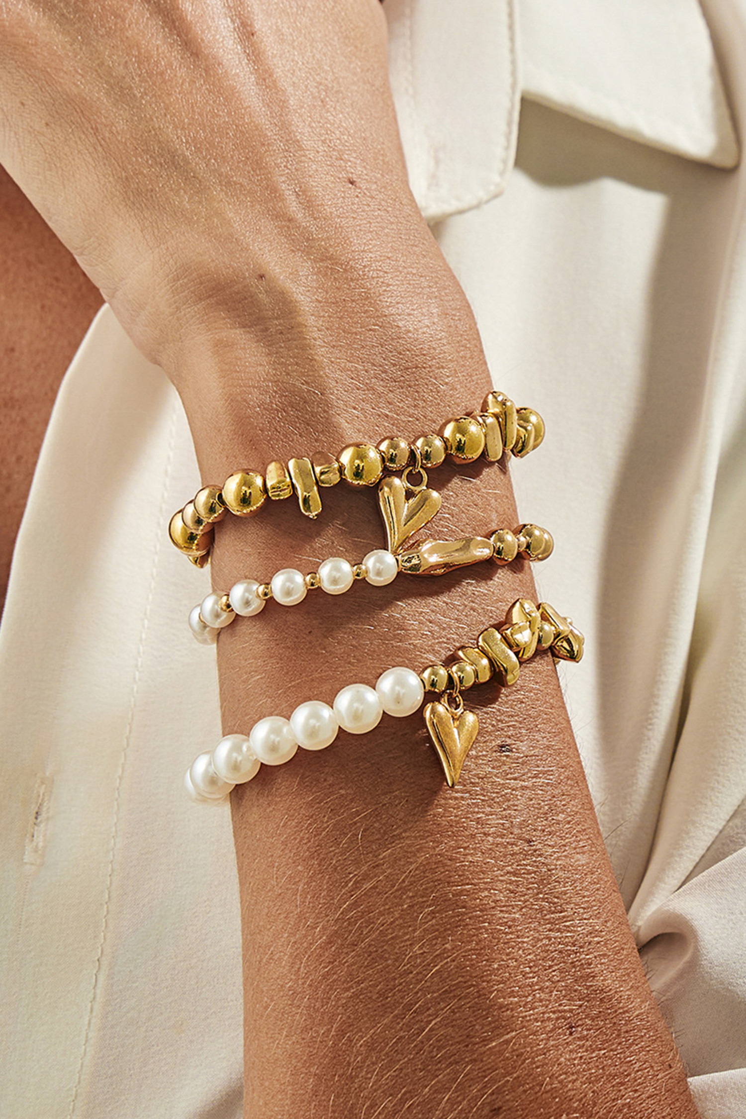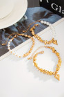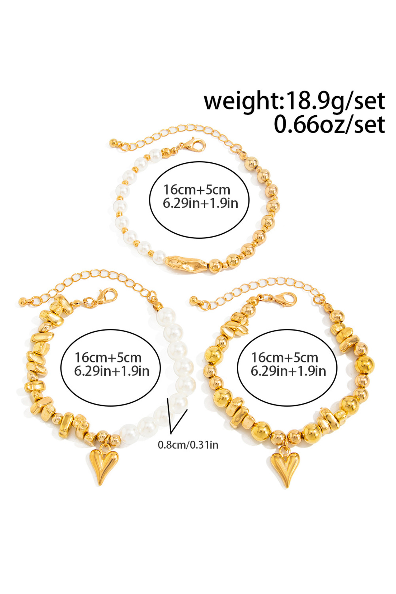 Gold 3pcs Irregular Bead Heart Charm Pearl Beading Bracelet Set