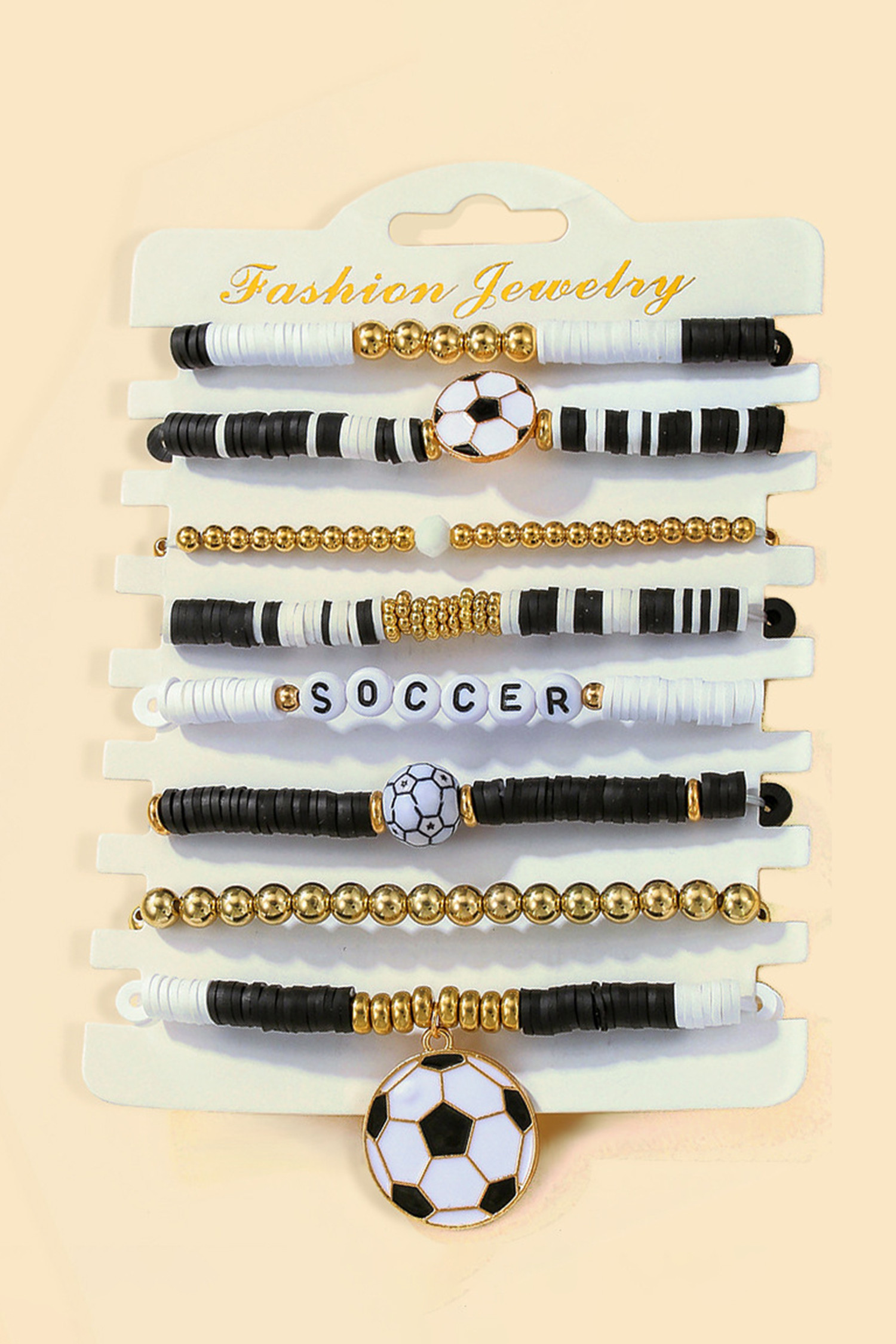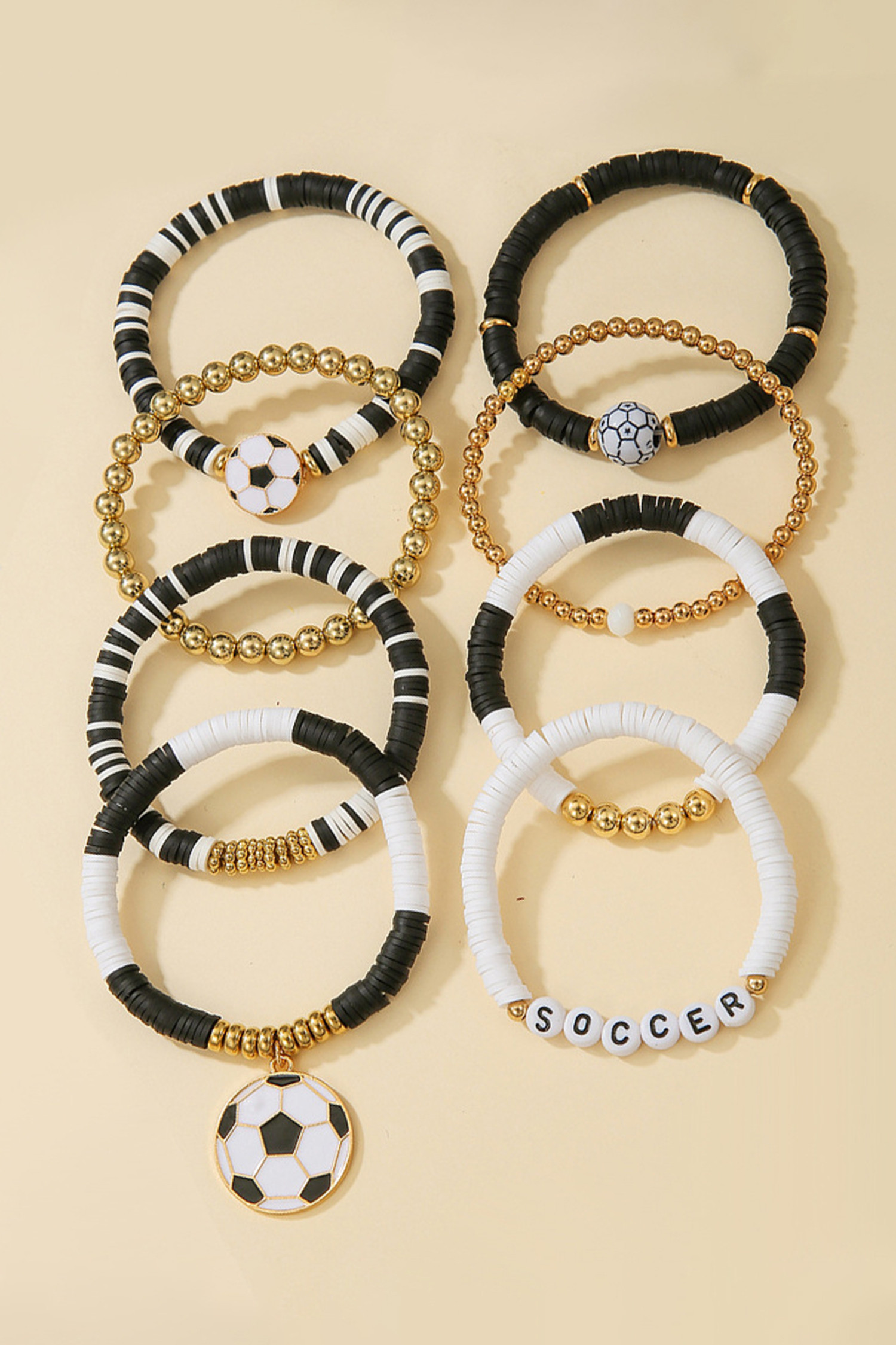 Gold 8pcs Soccer Game Day Multilayered Bracelet Set
