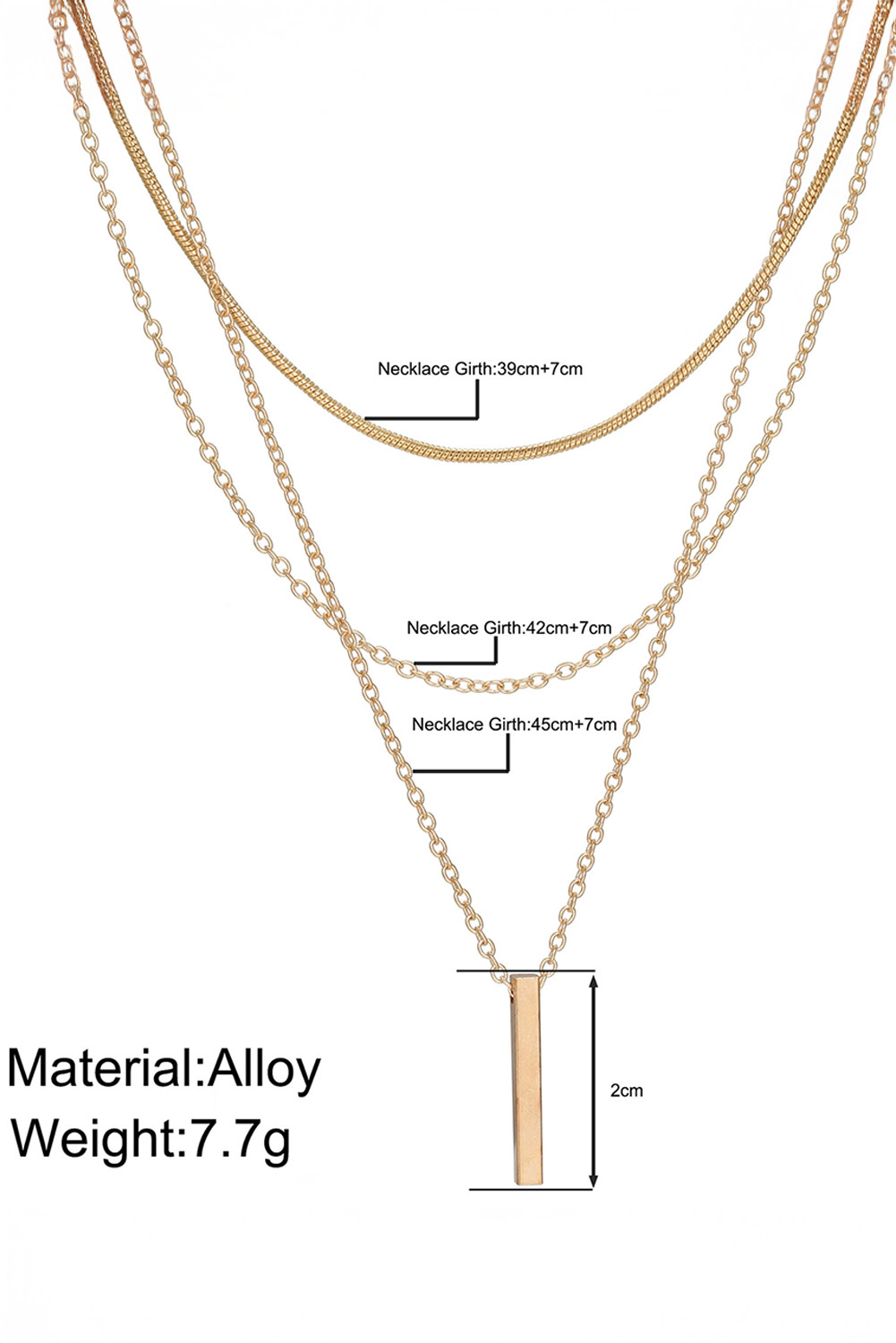 Gold Bar Pendant Layered Adjustable Chain Necklace