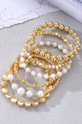 Gold Minimalist Pearl Beaded Multi Layer Elastic Bracelets