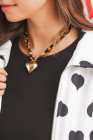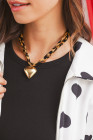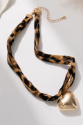 Gold Puffy Heart Charm Leopard Scarf Necklace