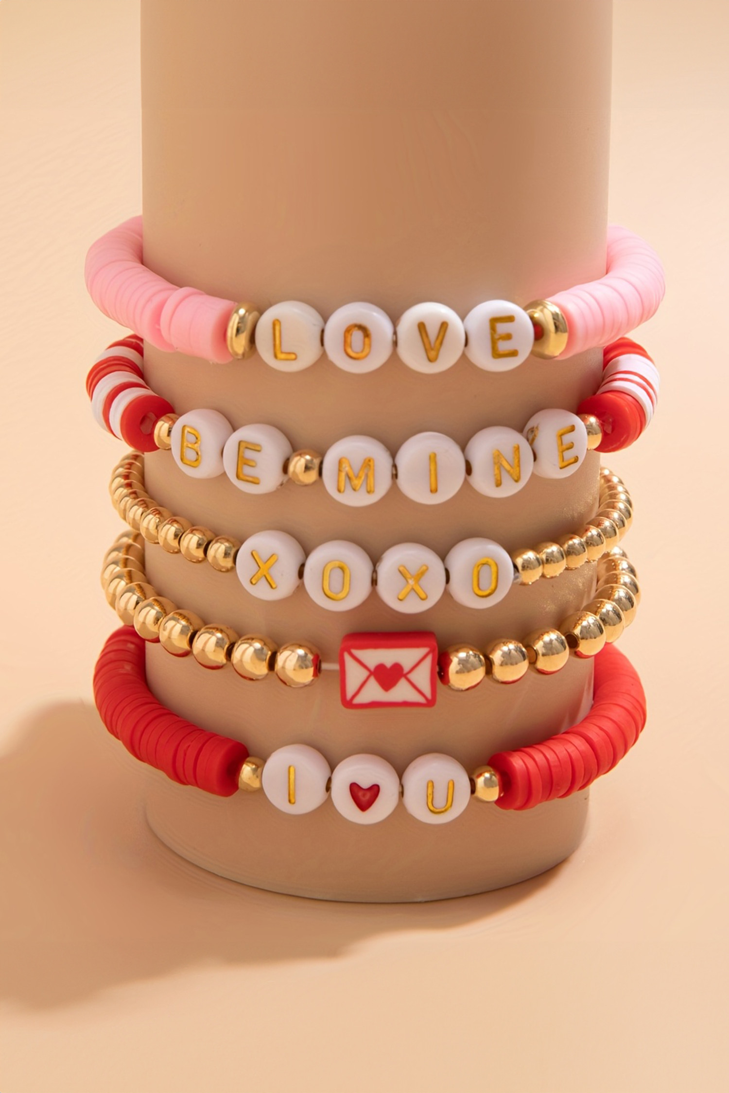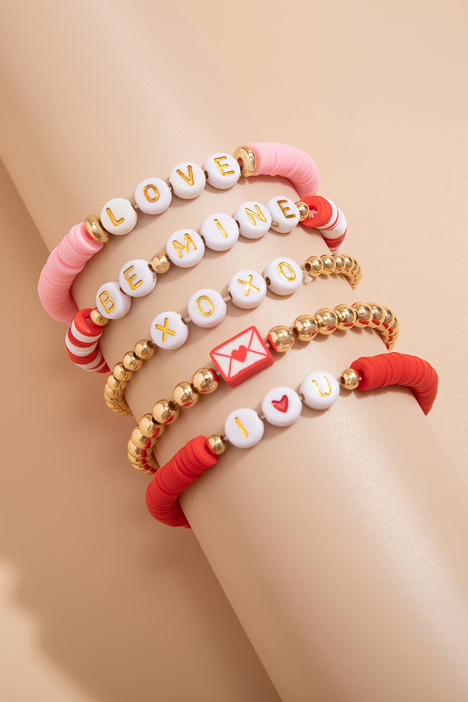 Gold Valentines Love Slogan Multilayer 5pcs Bracelet Set