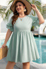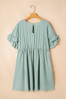 Grass Green Ruffle Trim Short Sleeve Plus Size Flared Mini Dress