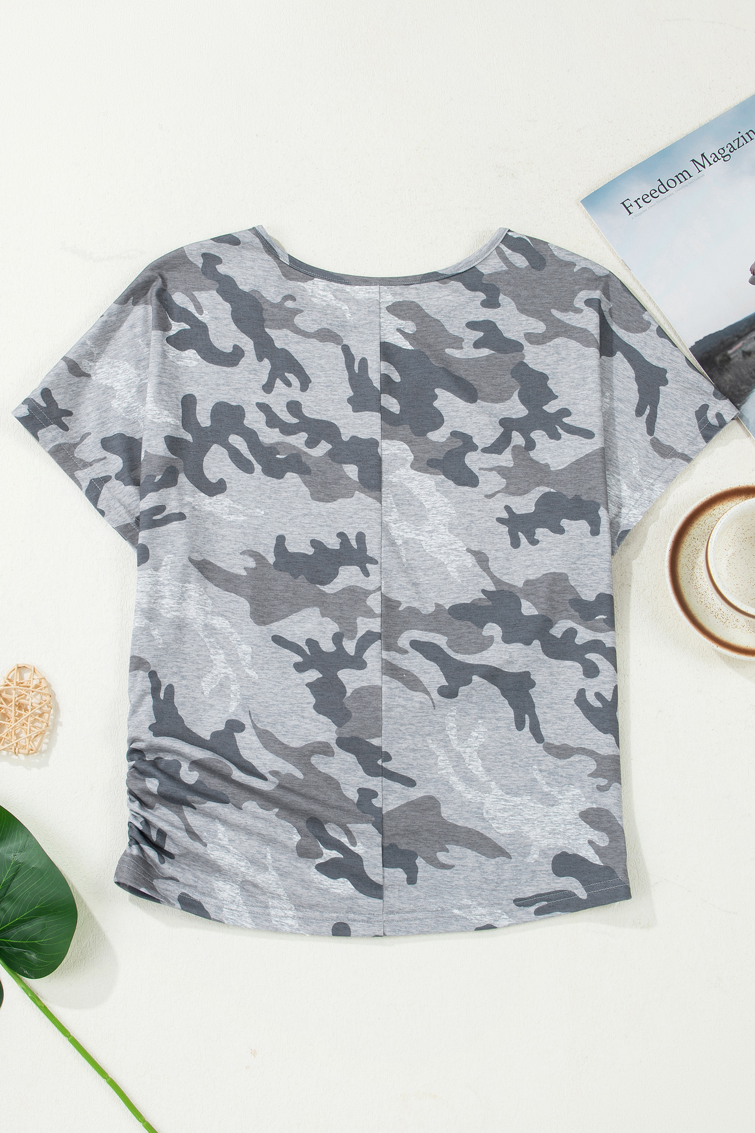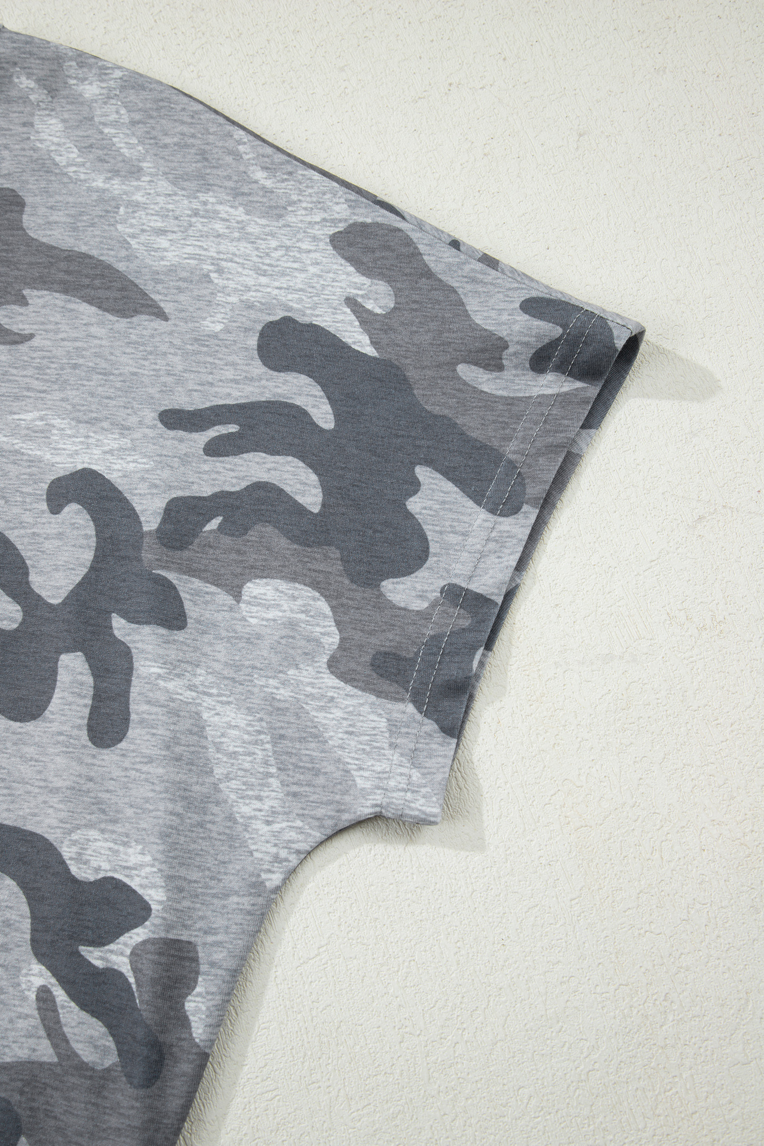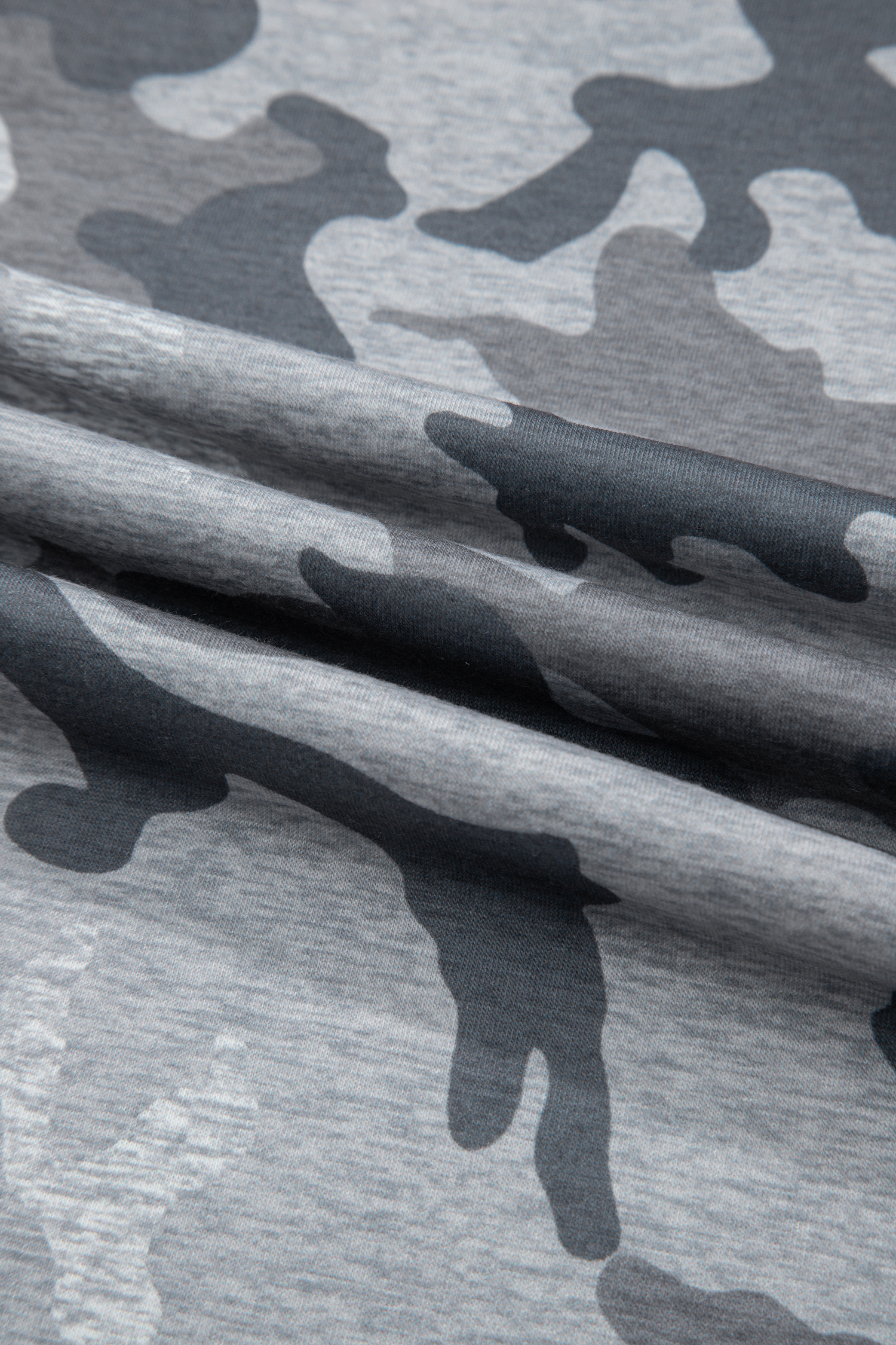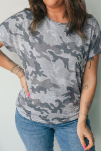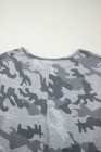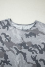 Gray Camouflage Print Round Neck T Shirt