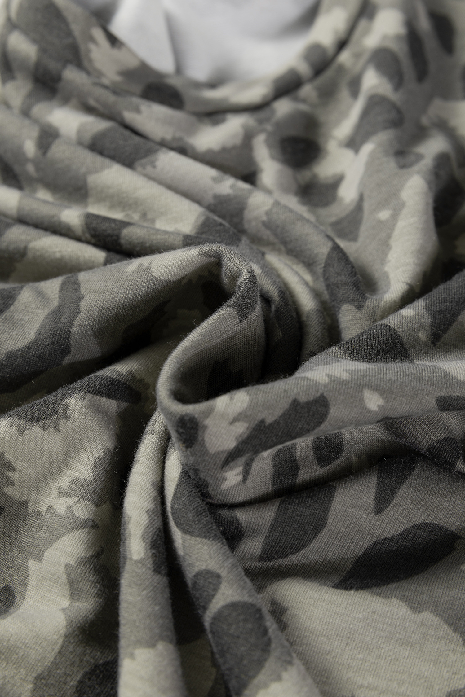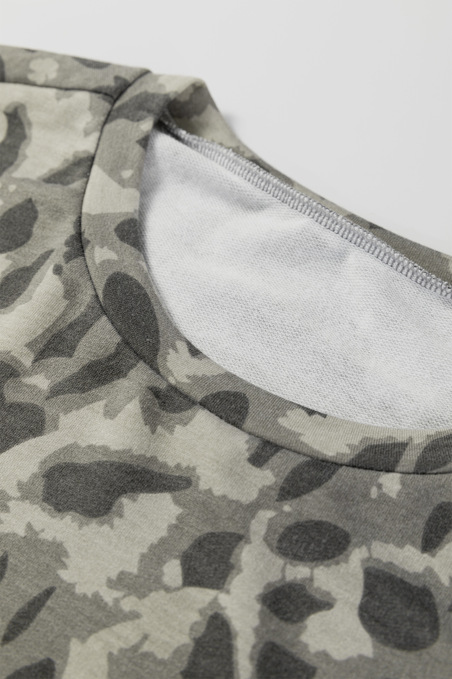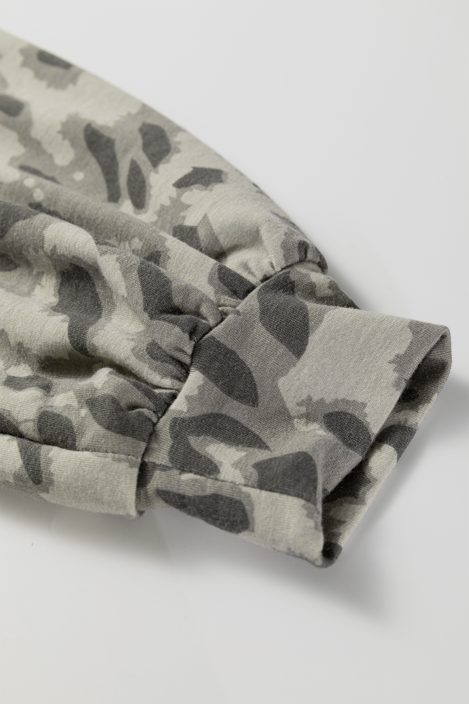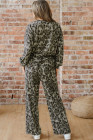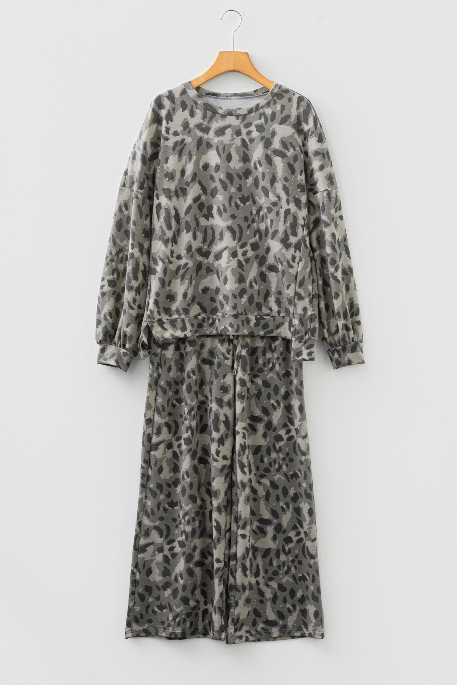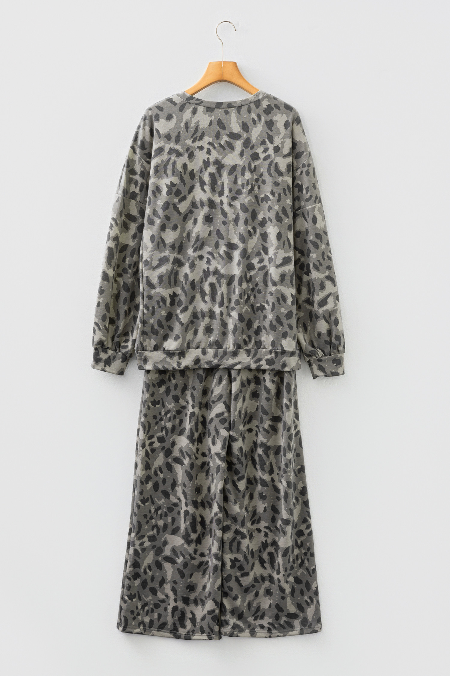 Gray Leopard Print Raw Seam Patchwork Pullover Drawstring Loose Pant Set