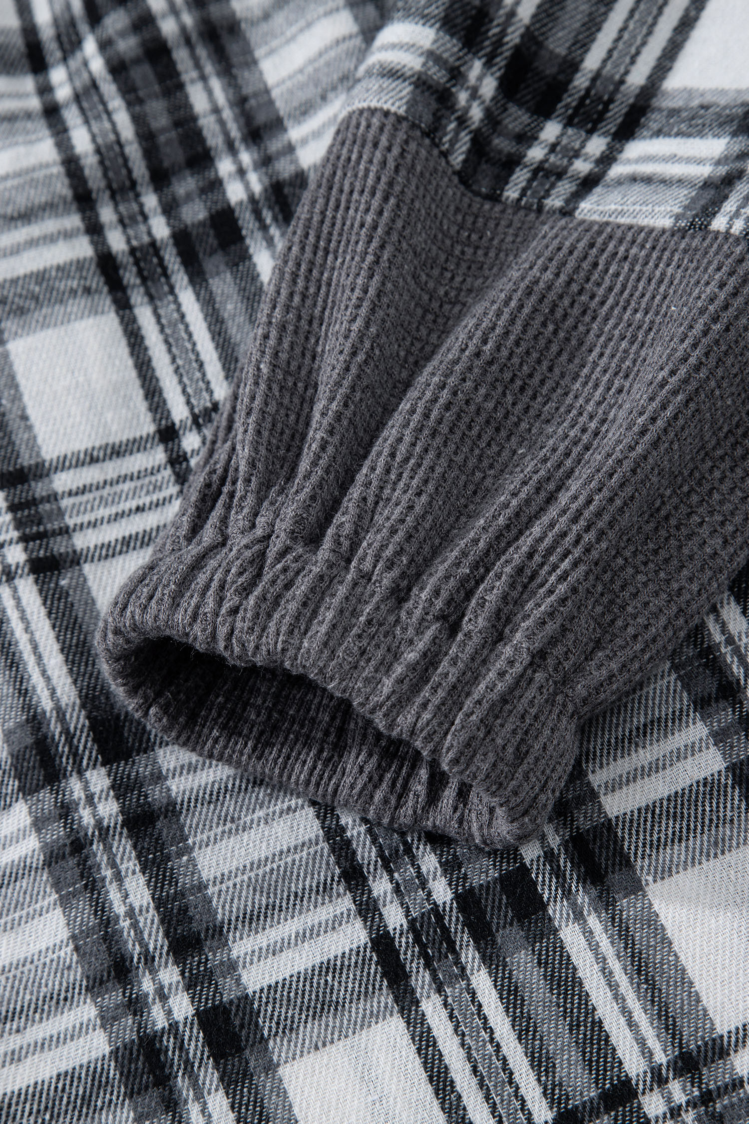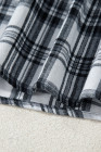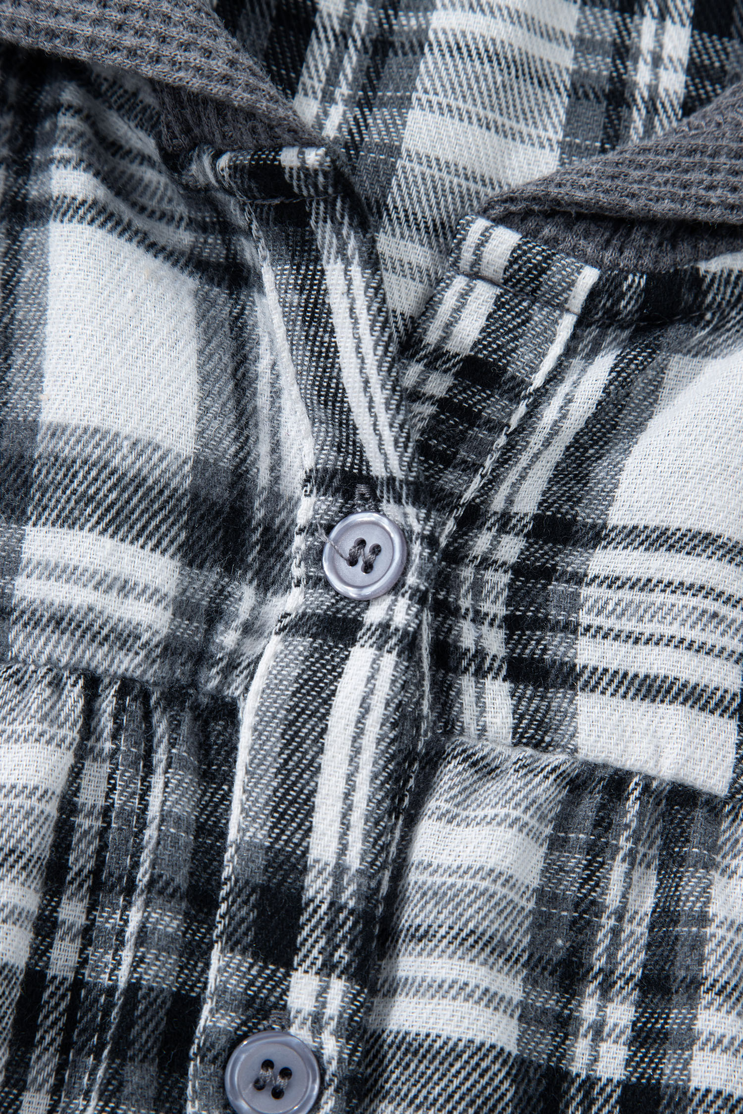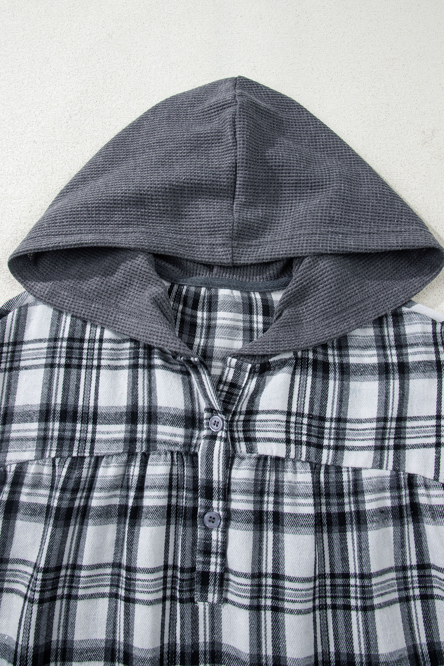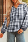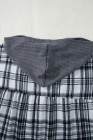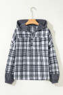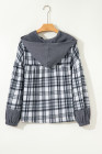 Gray Plaid Patchwork Long Sleeve Button Hooded Blouse