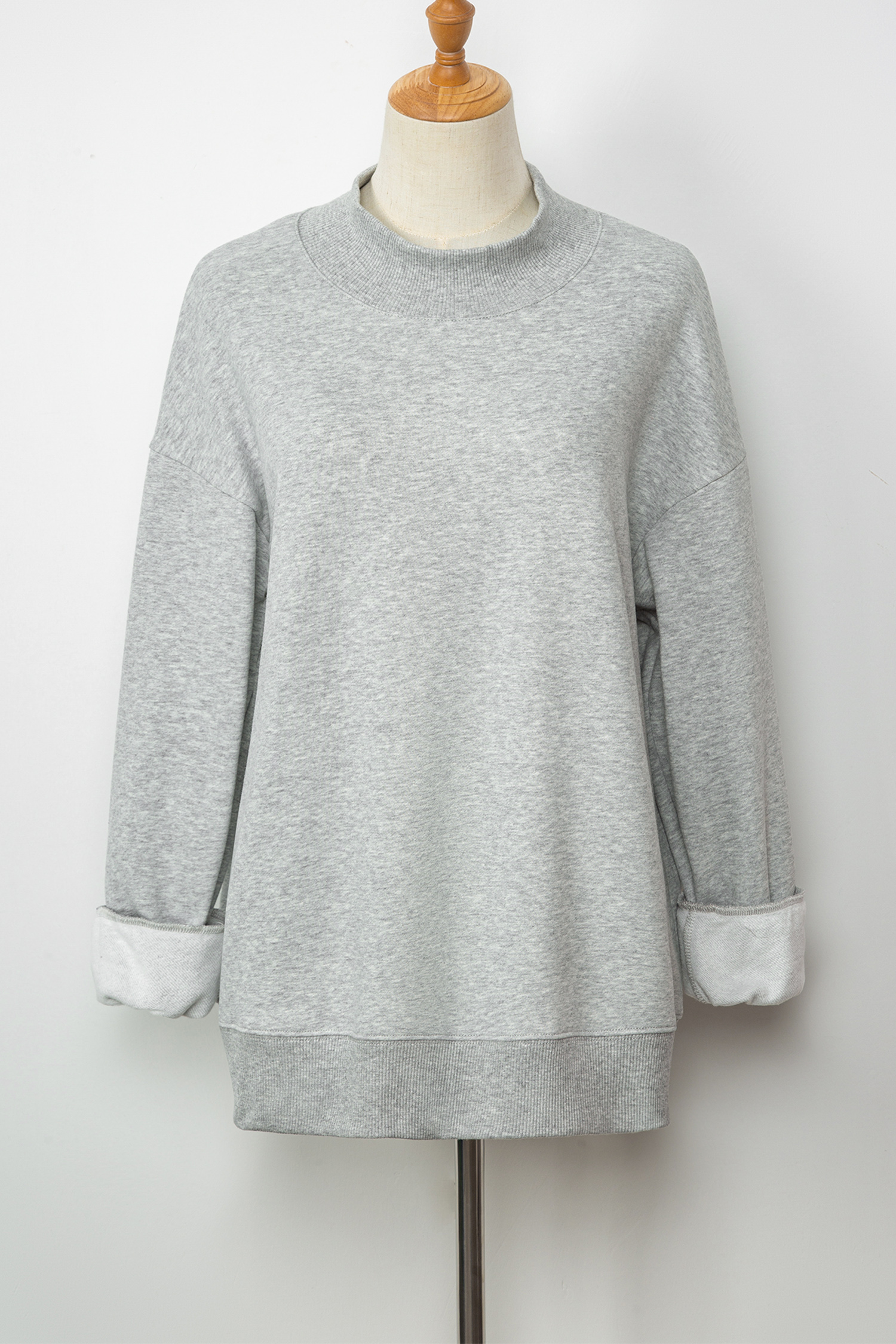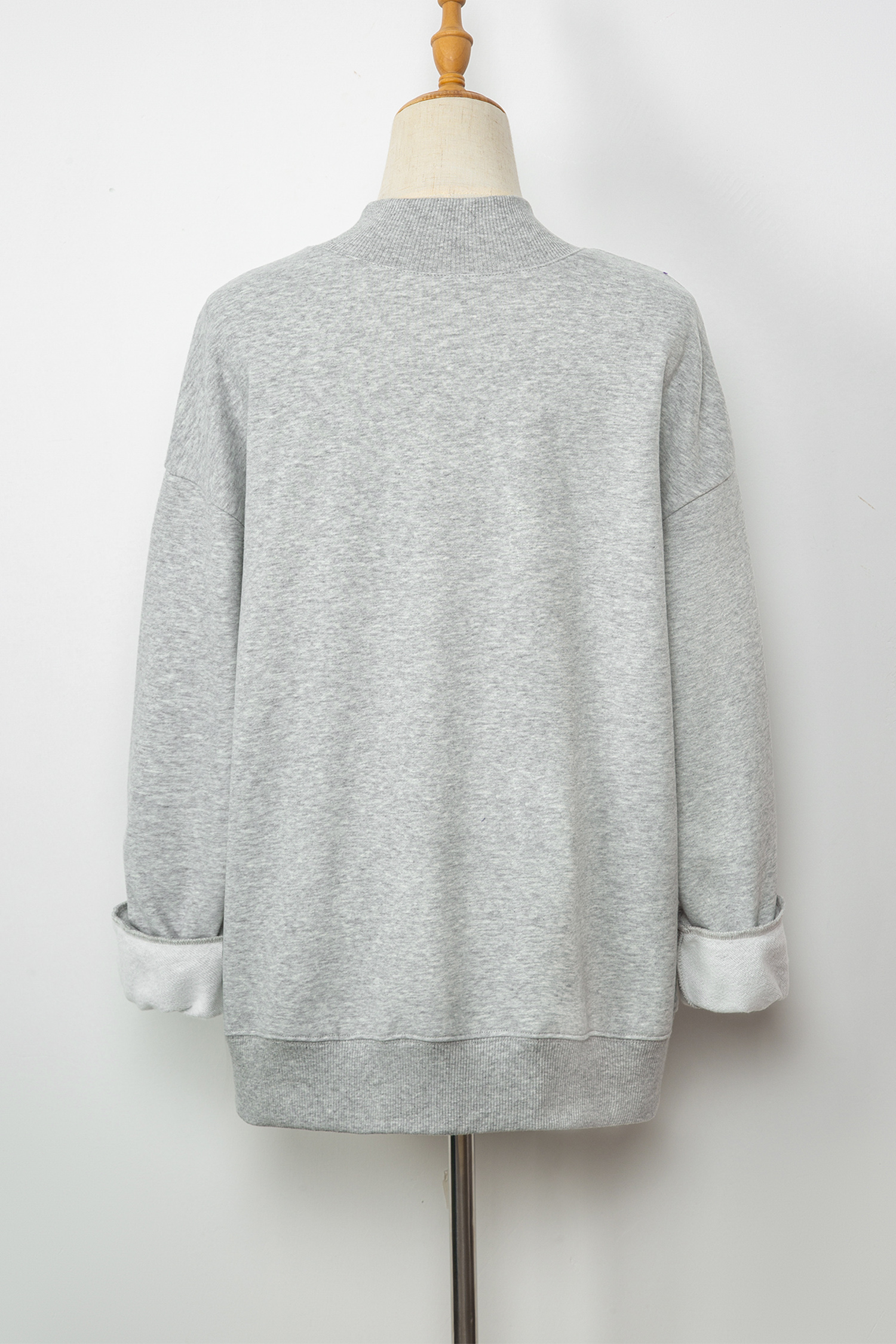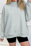 Gray Solid Color Oversized Mock Neck Sweatshirt