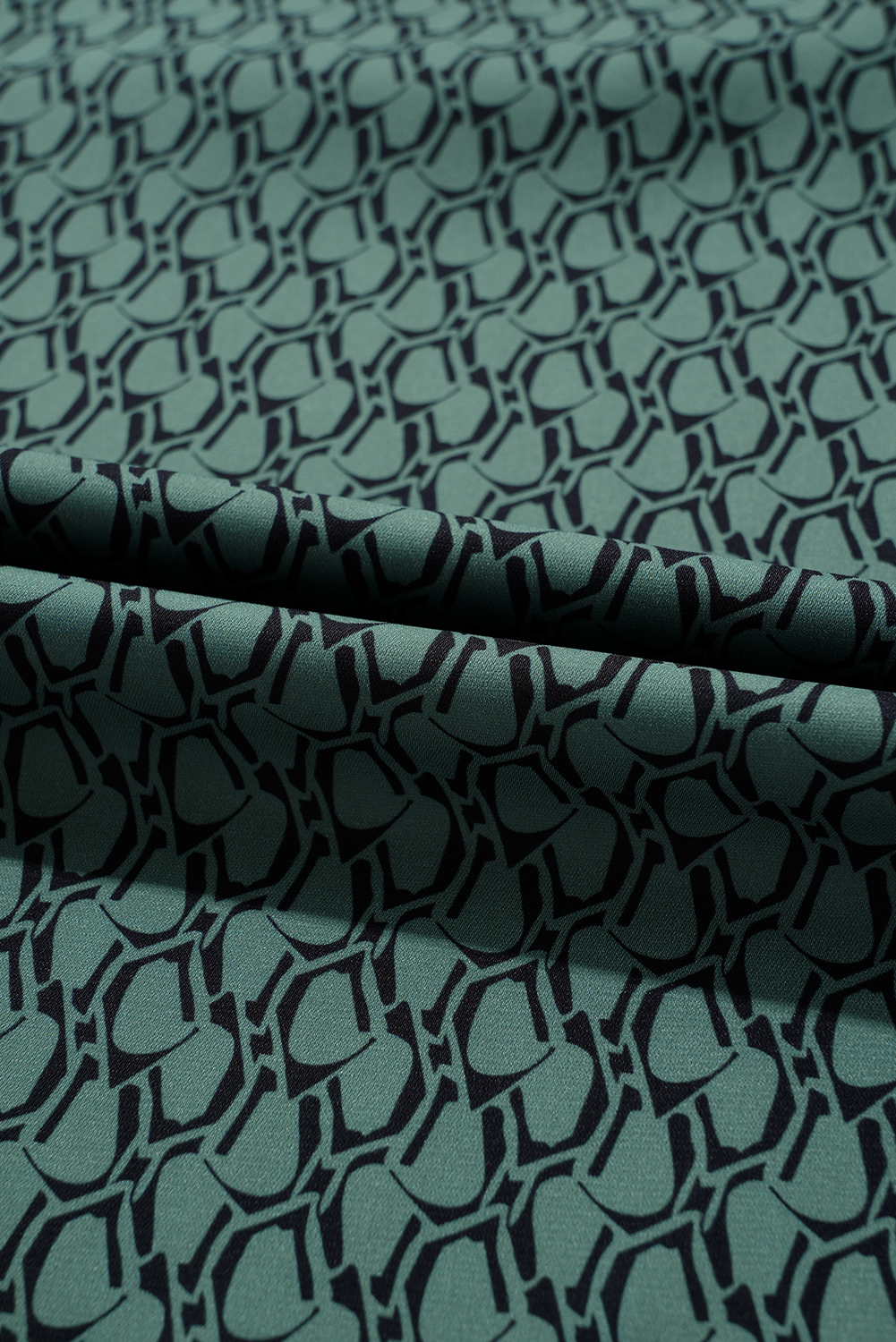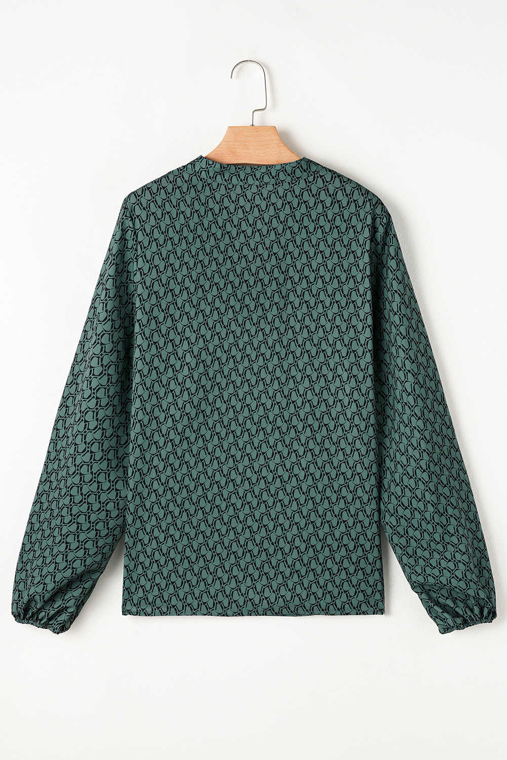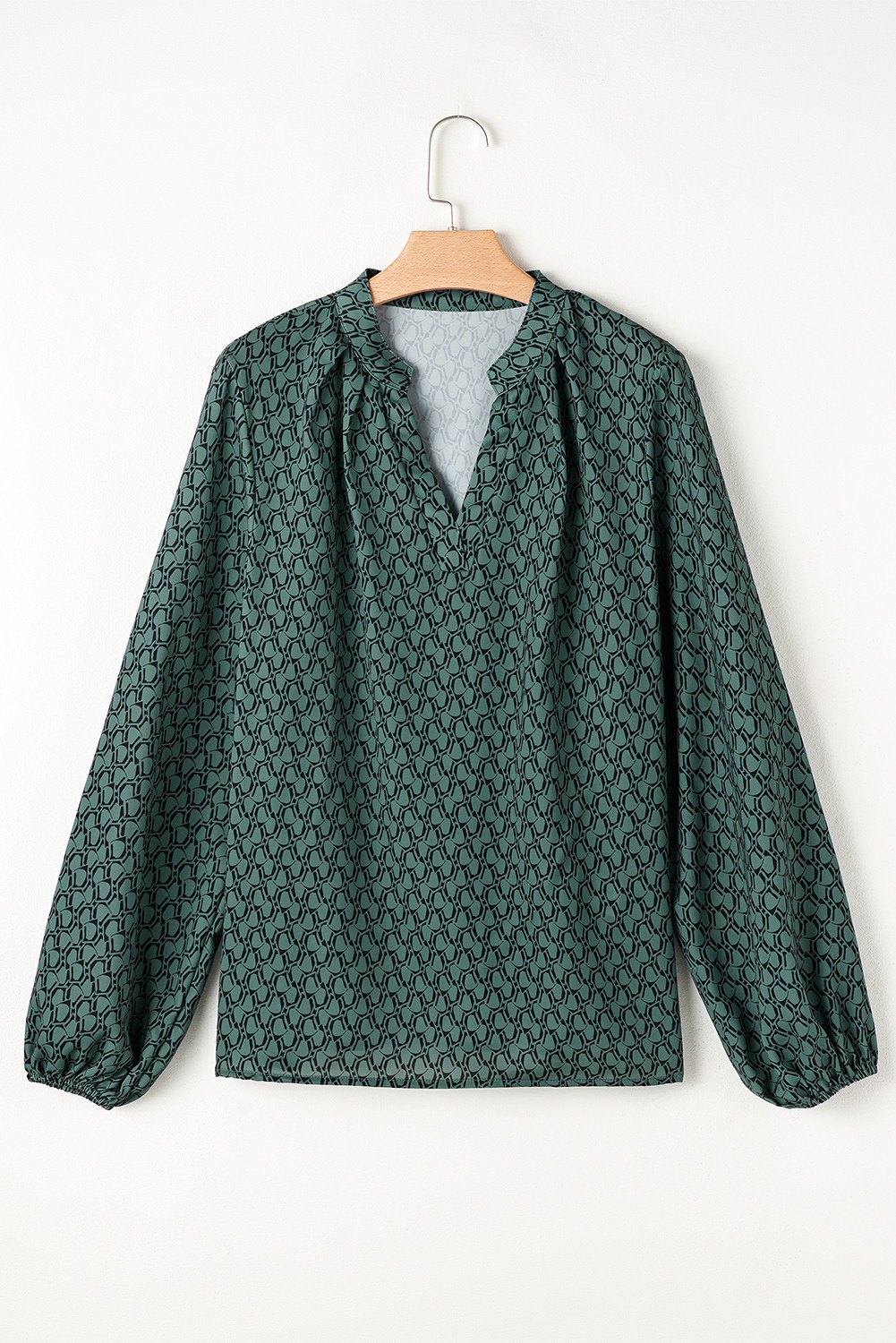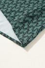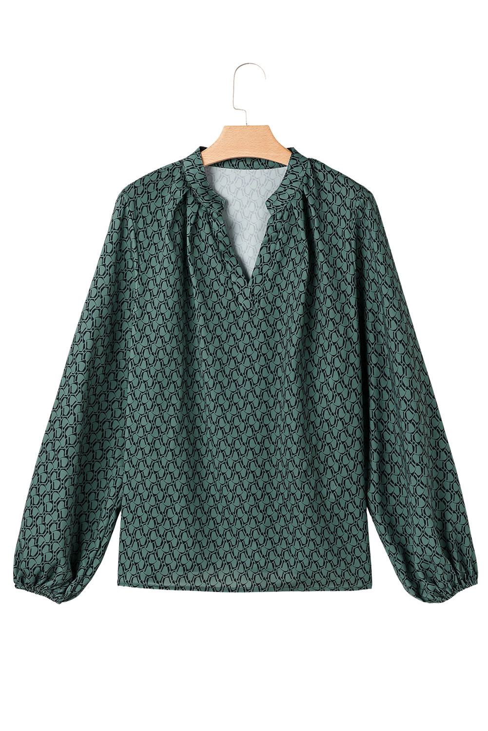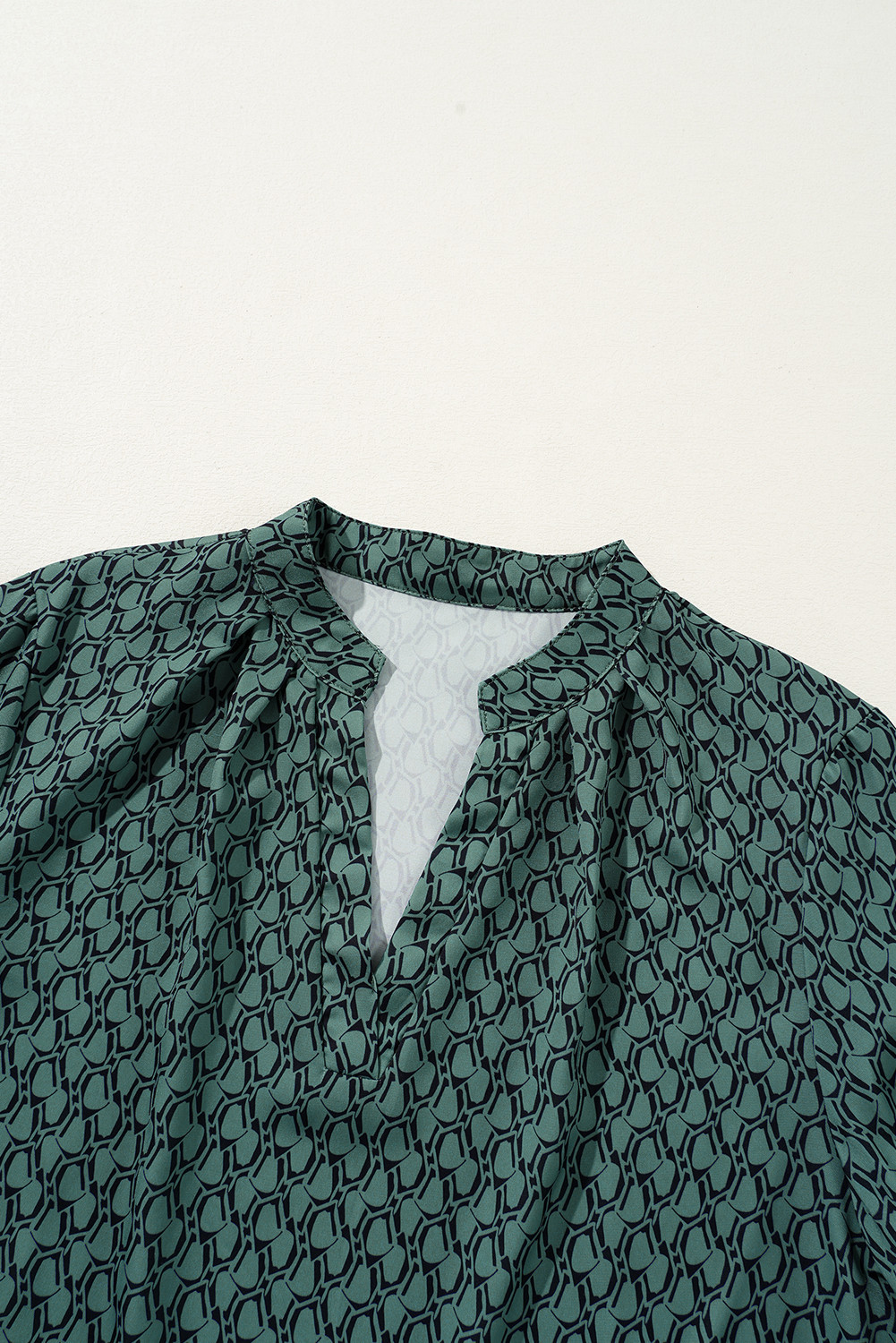 Green Geometric Print Notched Neck Puff Sleeve Blouse