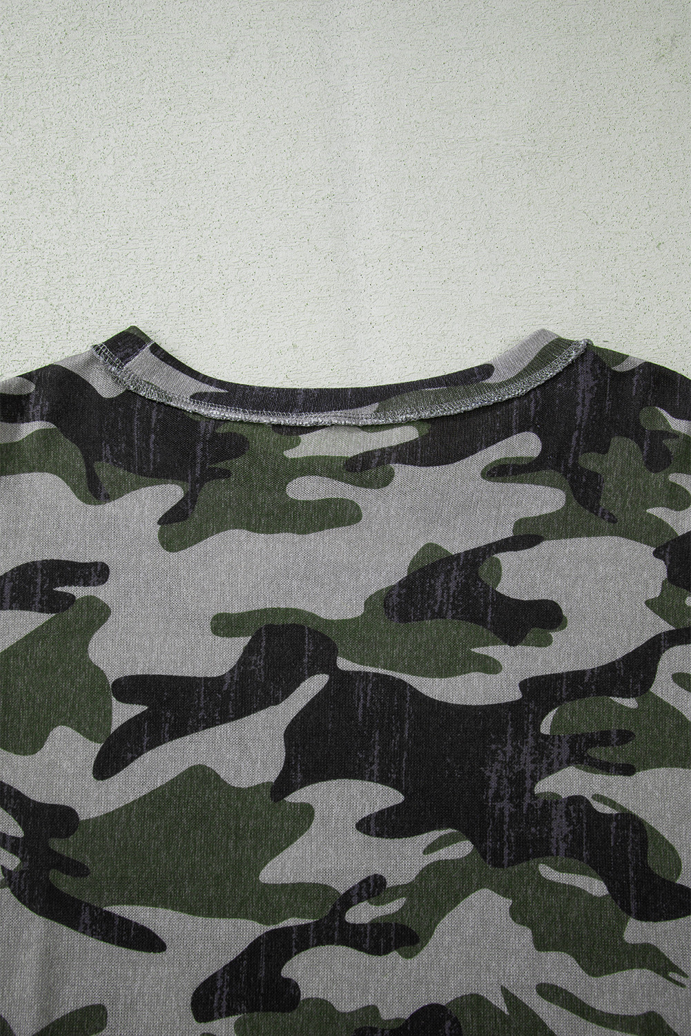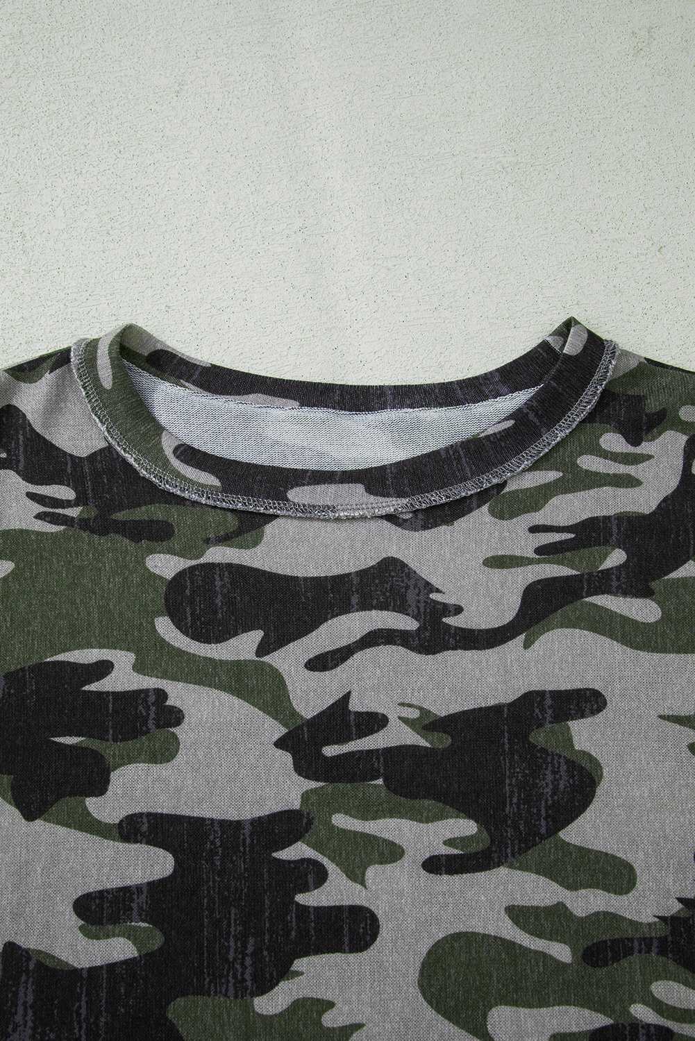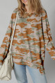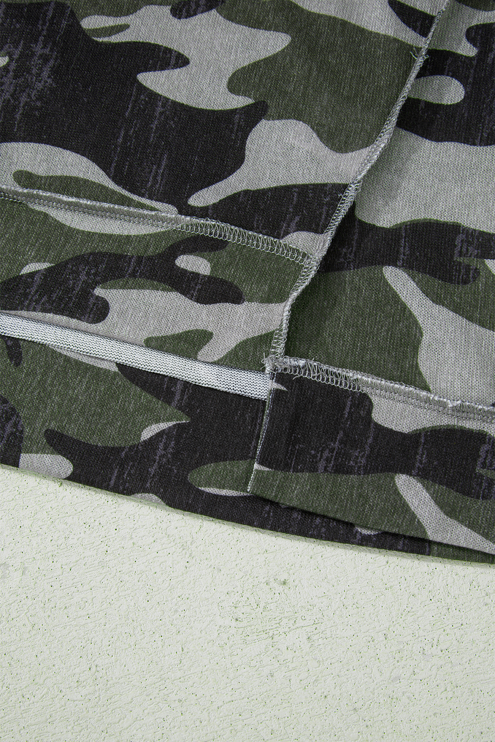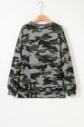 Green Retro Camouflage Print Exposed Seam Patchwork Drop Shoulder Sweatshirt