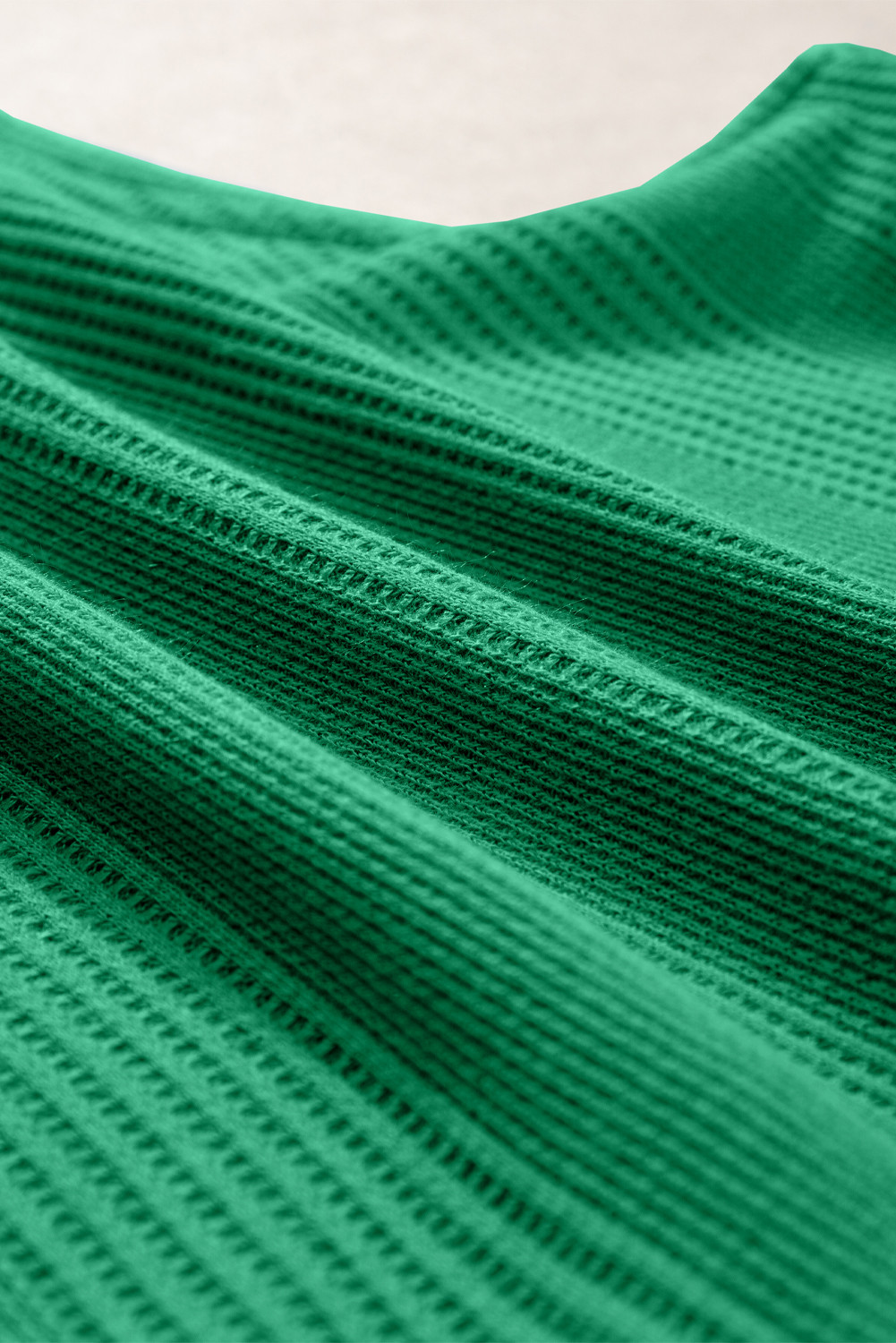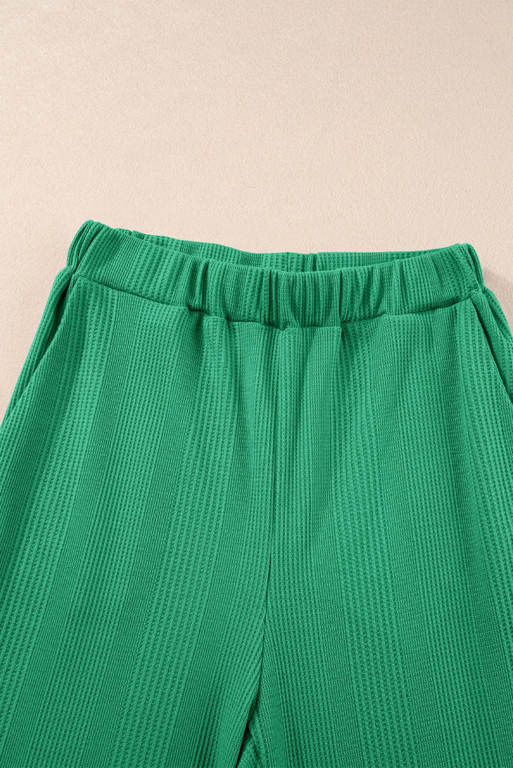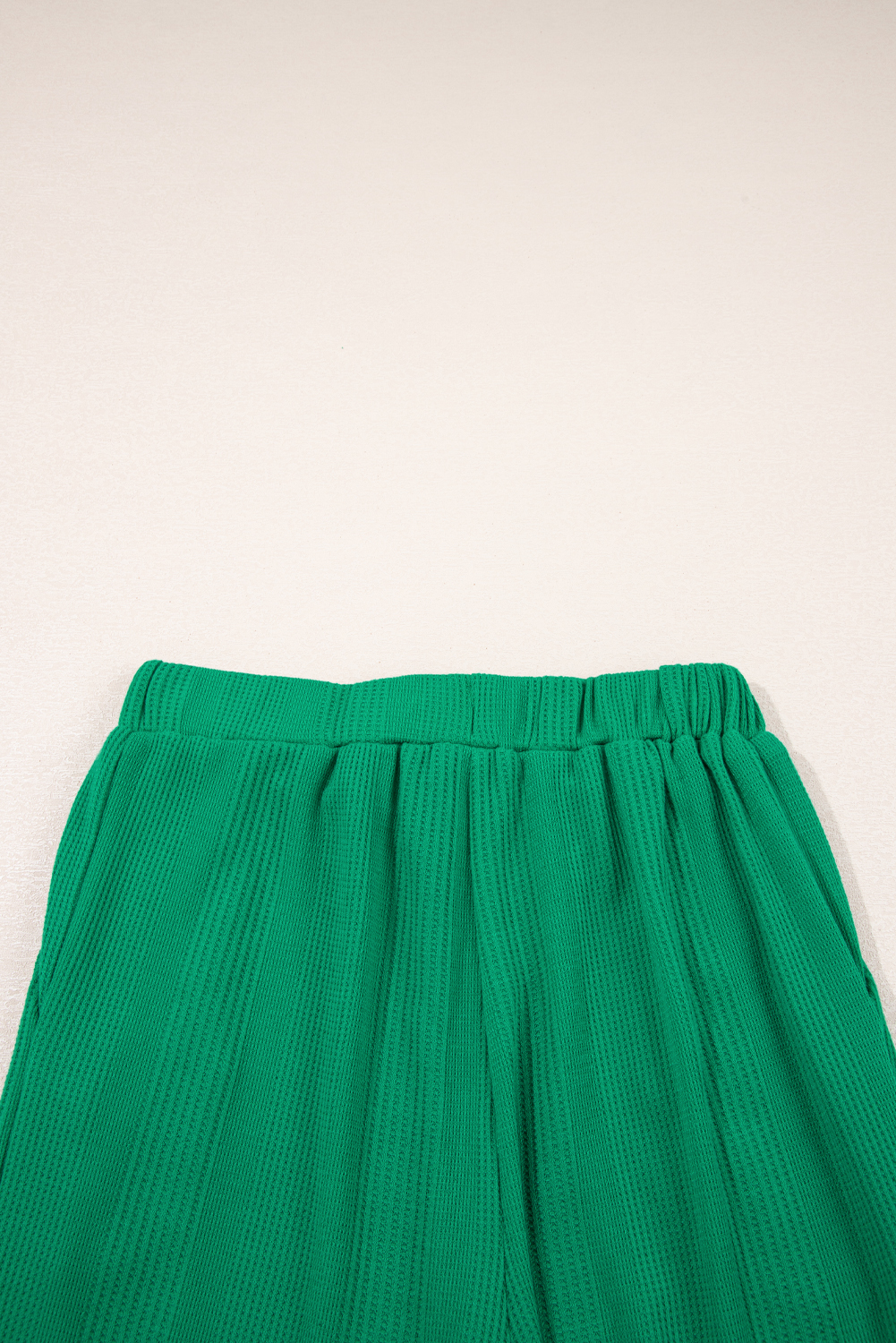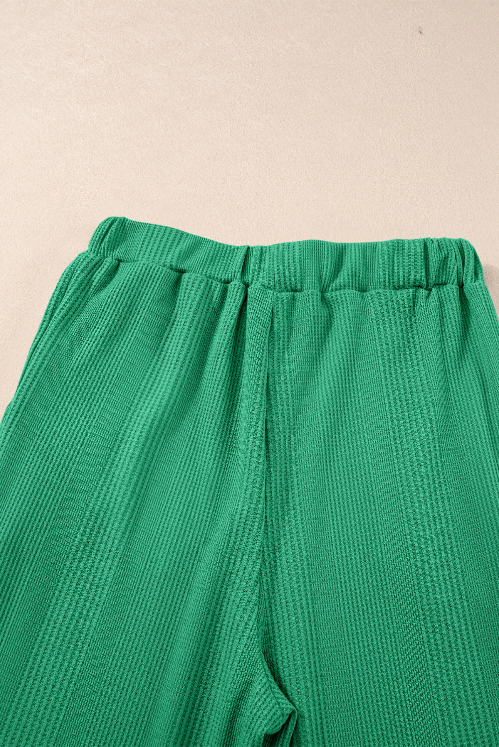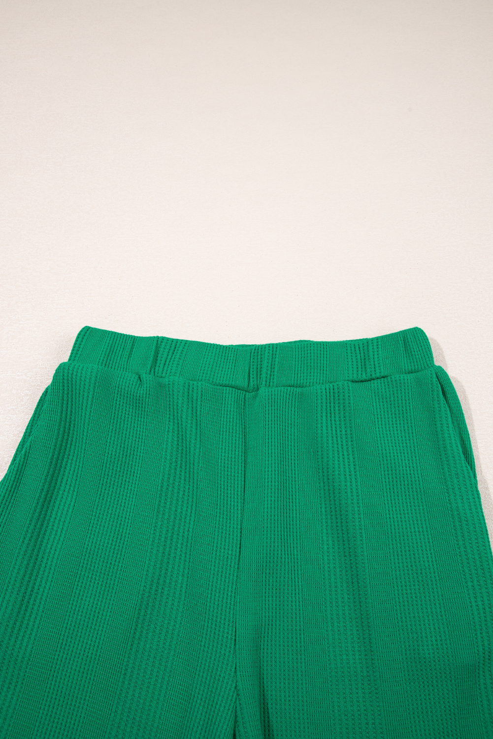Green Solid Color Ribbed Ruffle Tank Top and Pants Set