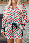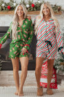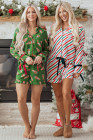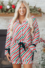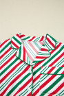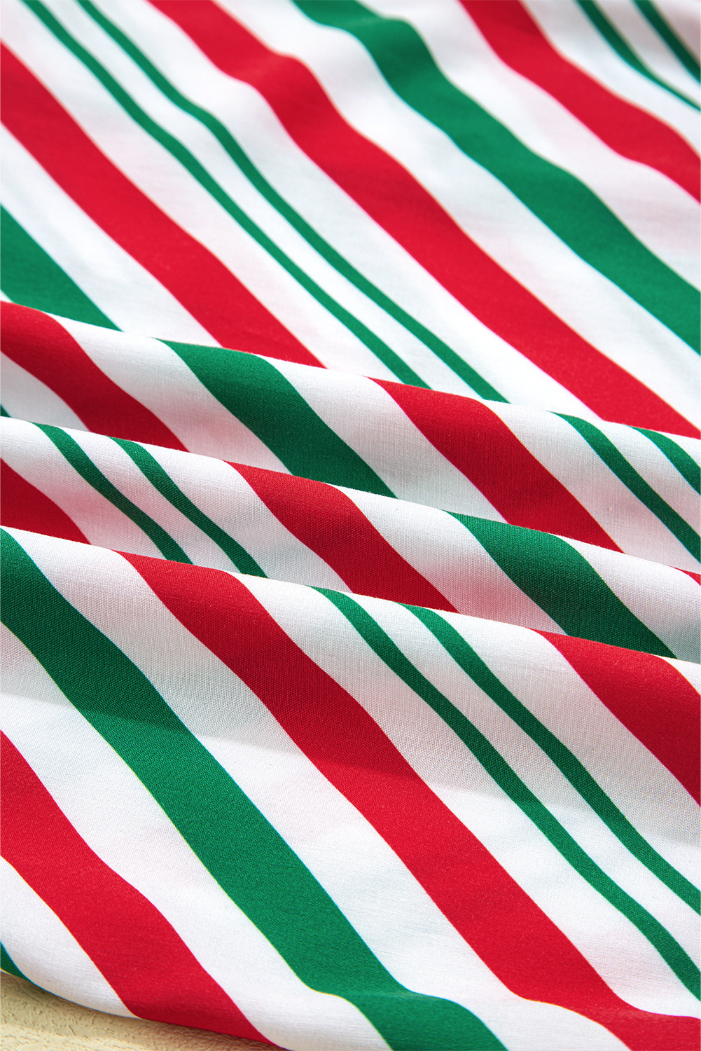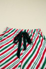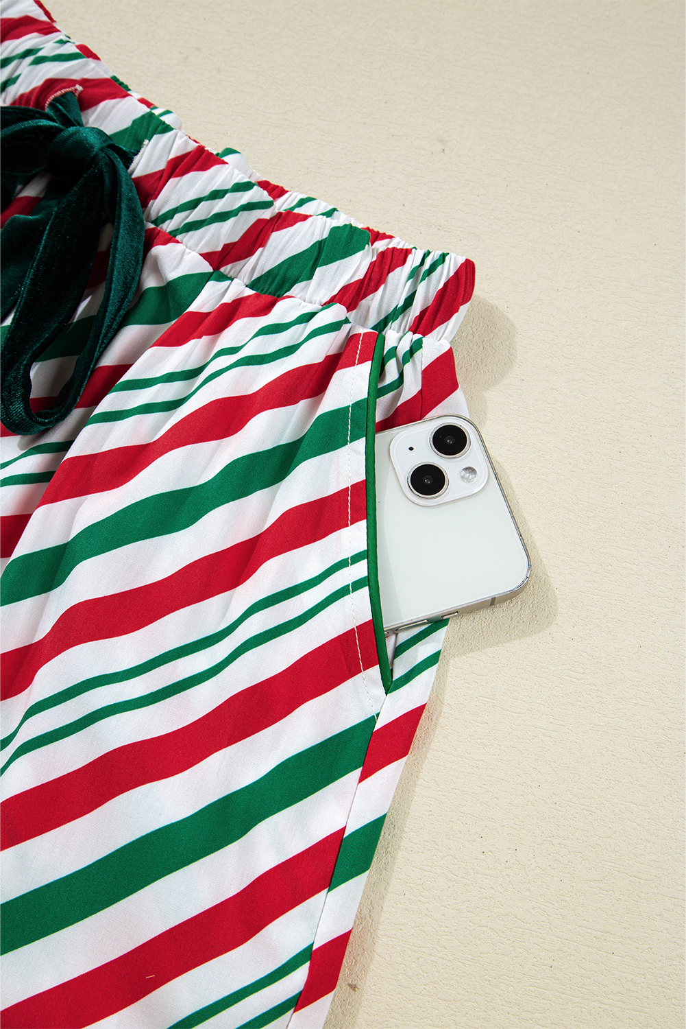 Green Stripe Contrast Velvet Ribbon Knot Christmas 2pcs Pajama Set