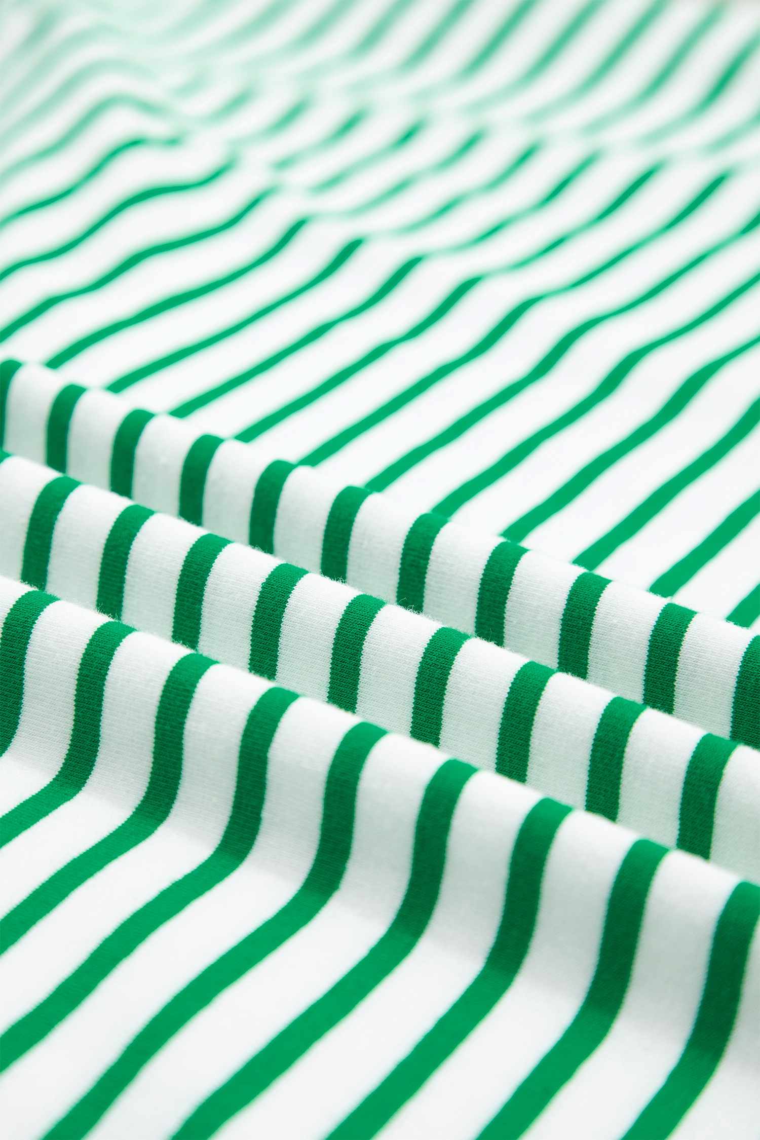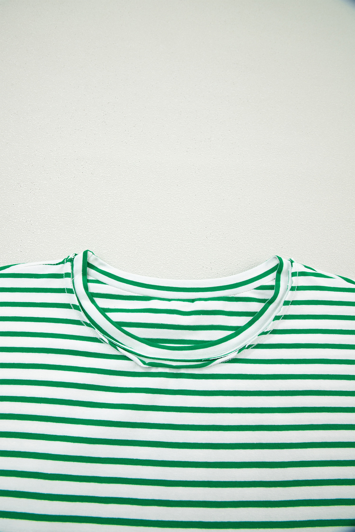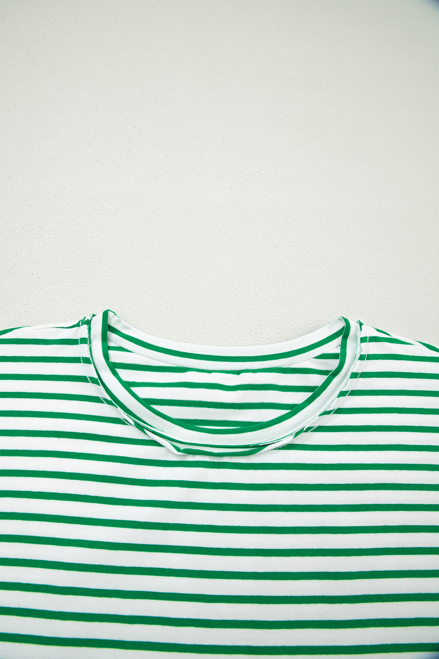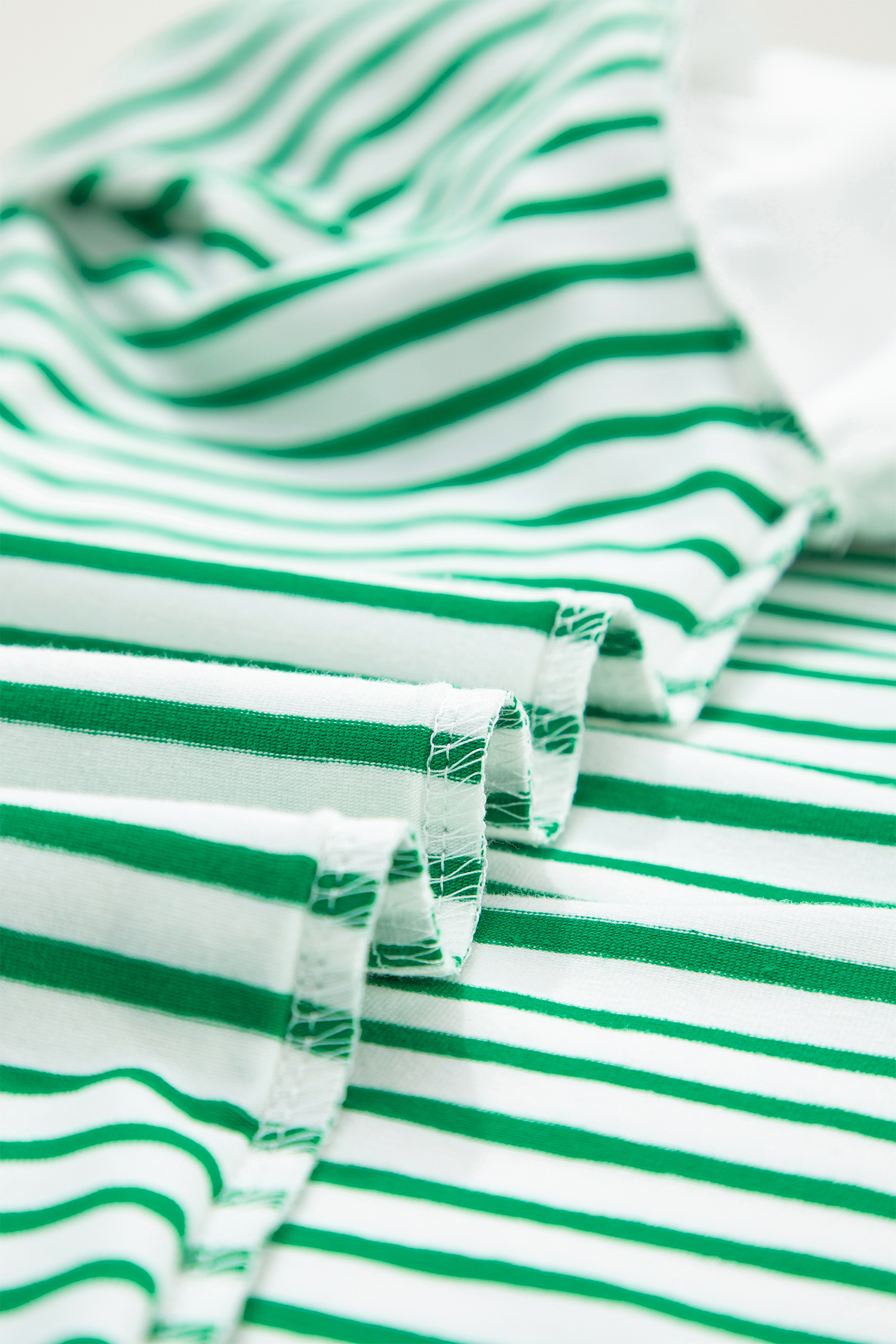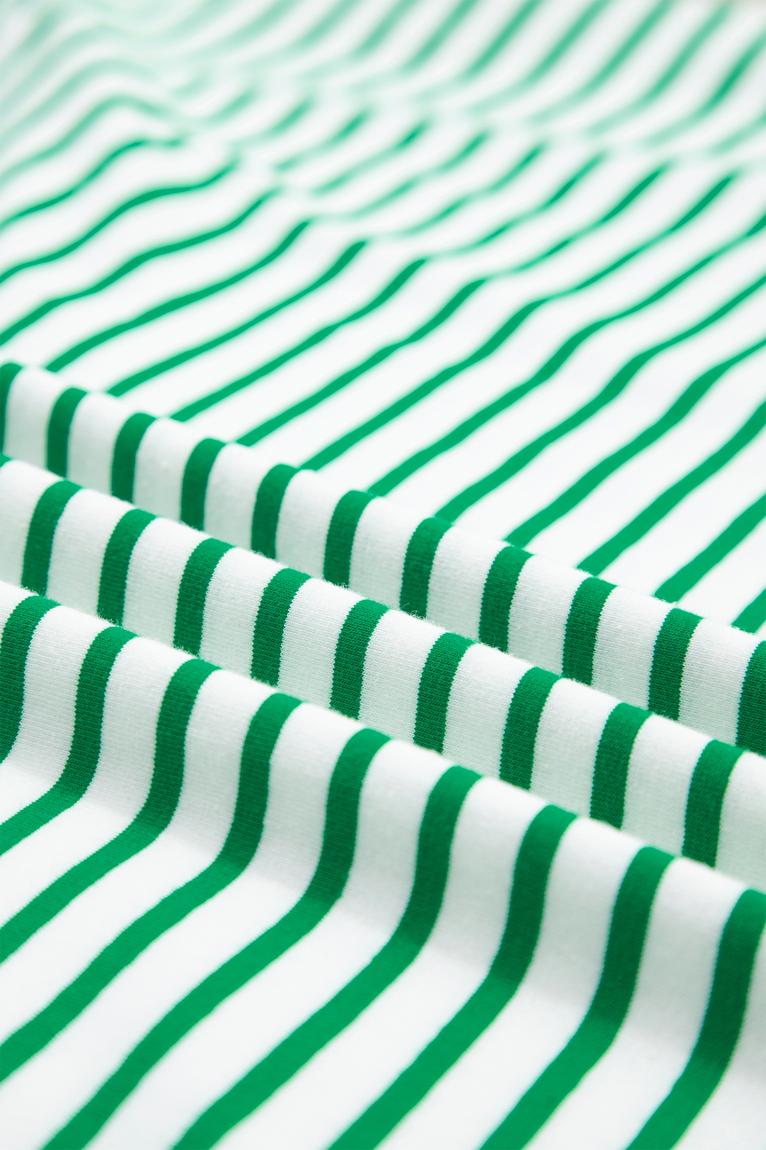 Green Stripe Floral Puff Sleeve Patchwork Round Neck Loose Top