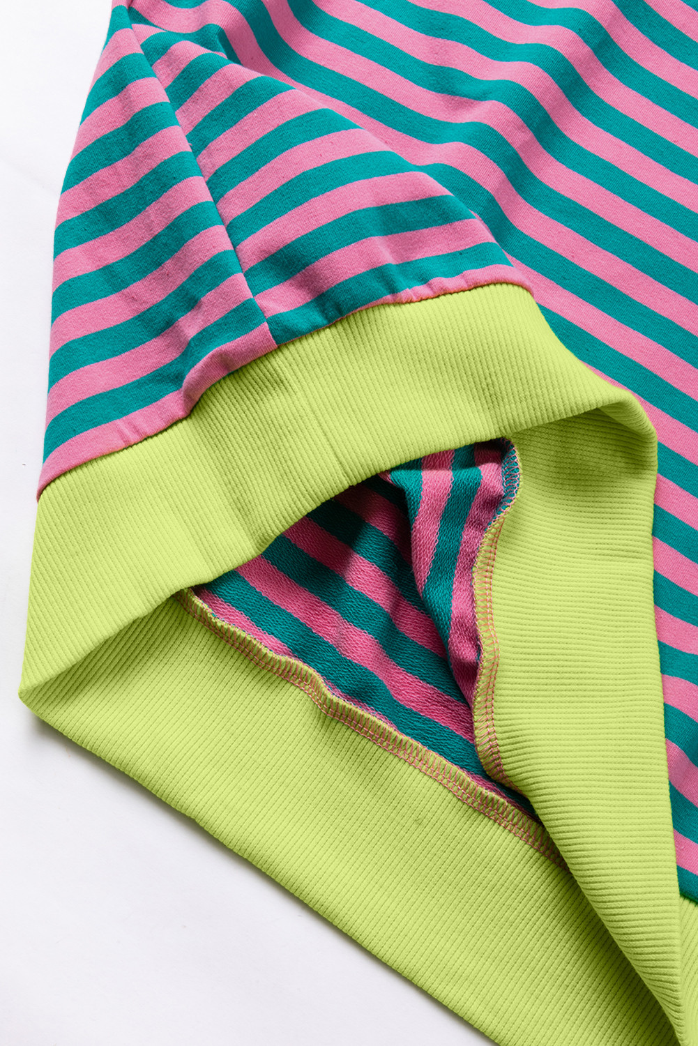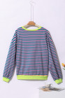 Green Stripe Oversized Contrast Trim Pullover Sweatshirt