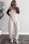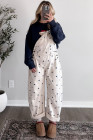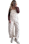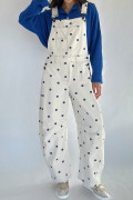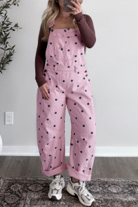 Jet Stream Polka Dot Print Bib Pocket Denim Barrel Overalls Jumpsuit