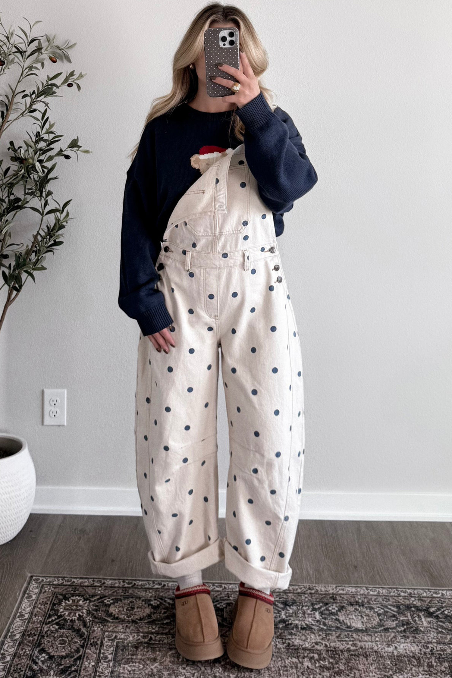 Polka Dot Print Bib Pocket Denim Barrel Overalls Jumpsuit