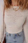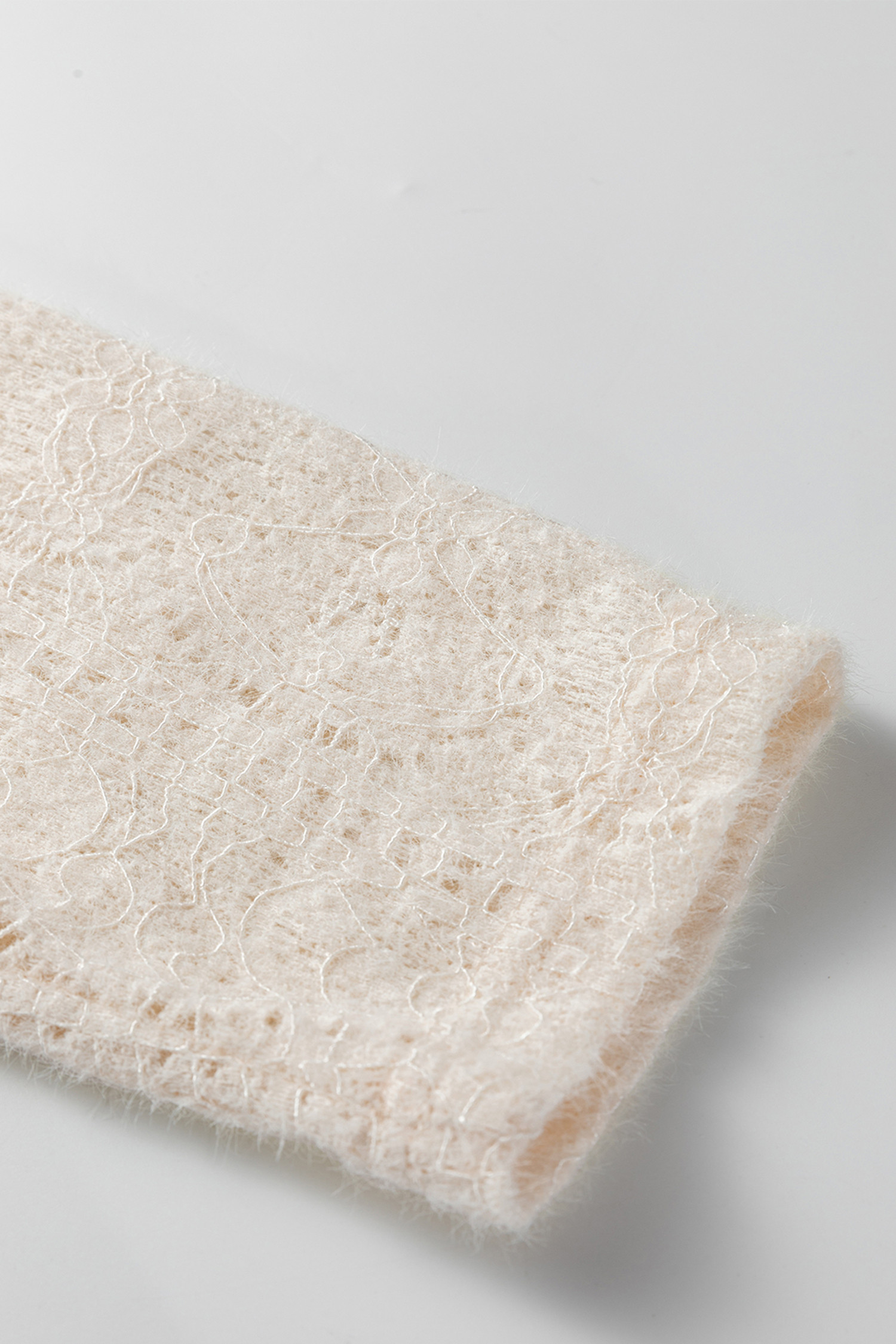 Jet Stream Semi Sheer Lace Long Sleeve Cropped Top