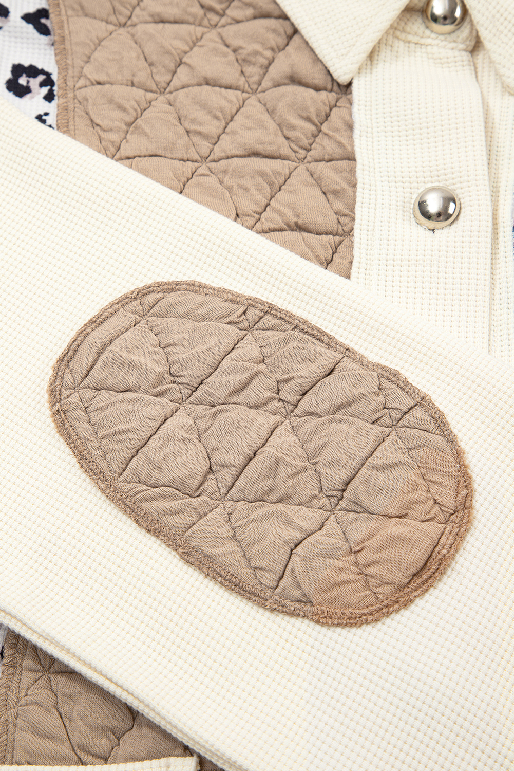 Khaki Leopard Waffle Quilted Patchwork Button Front Jacket