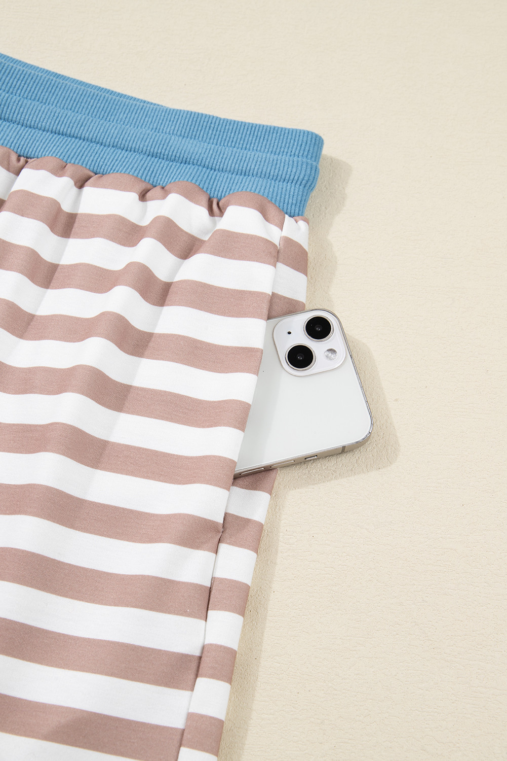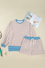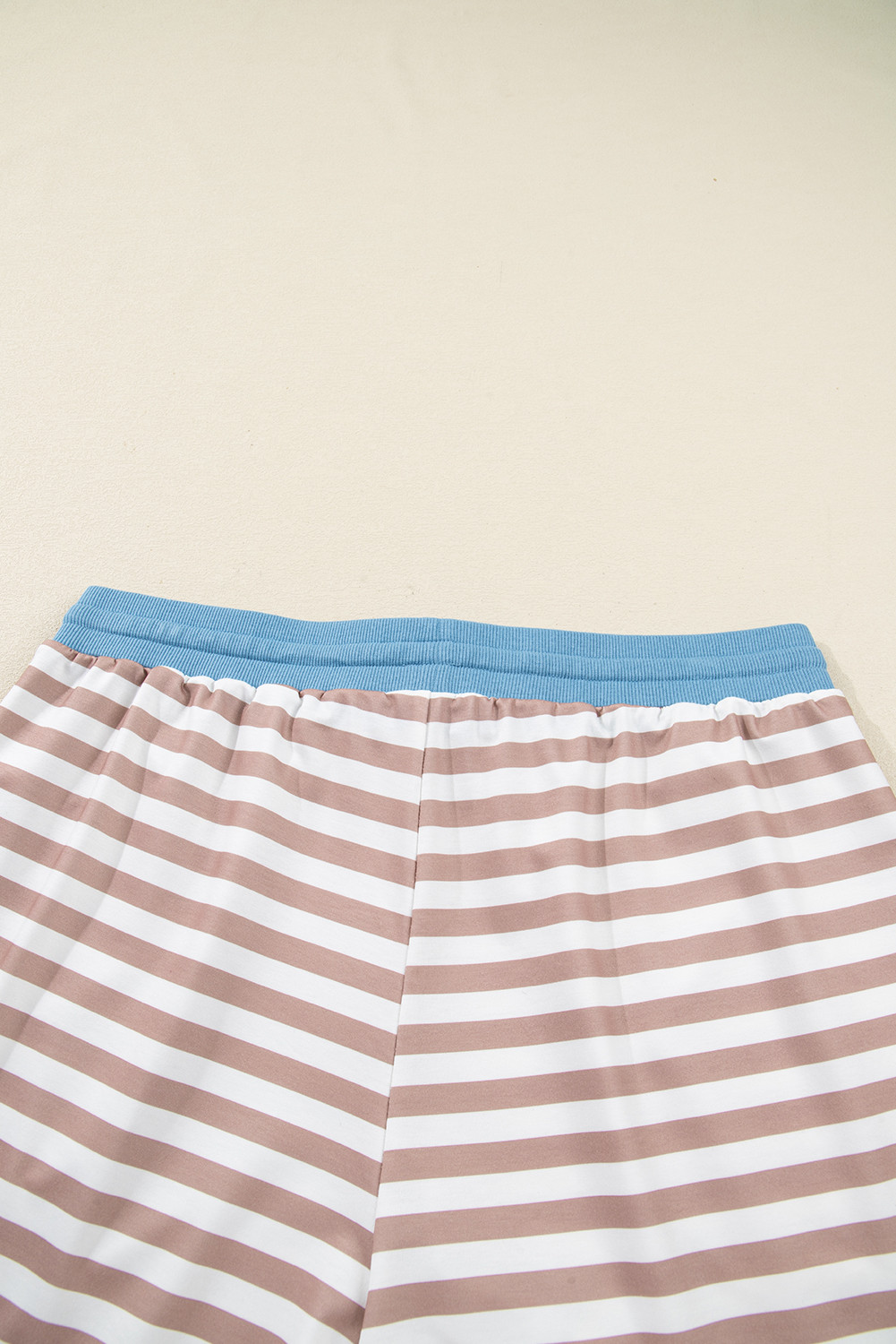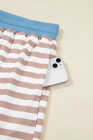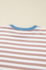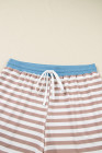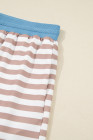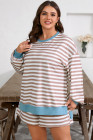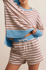 Khaki Stripe Contrast Edge Drop Shoulder Pullover and Shorts Plus Size Set