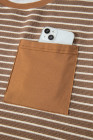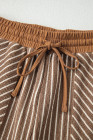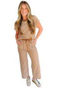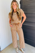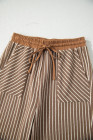 Khaki Stripe Crew Neck Tee Drawstring Waist Cropped Pants Set