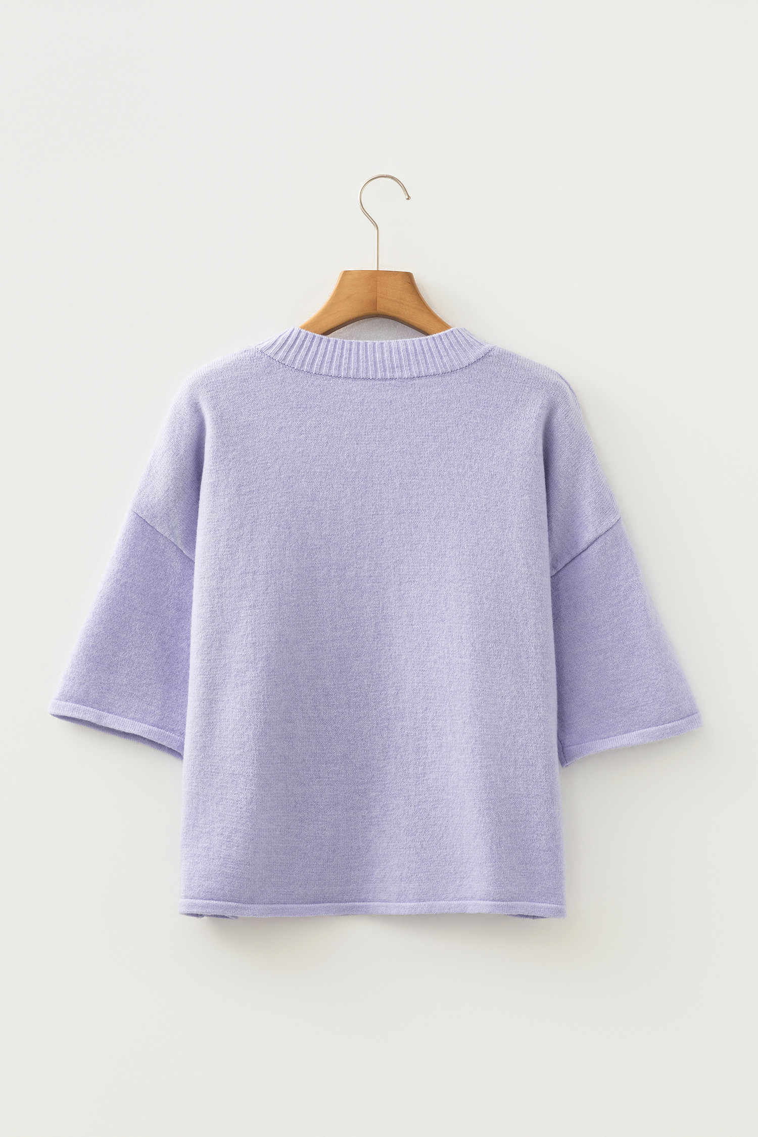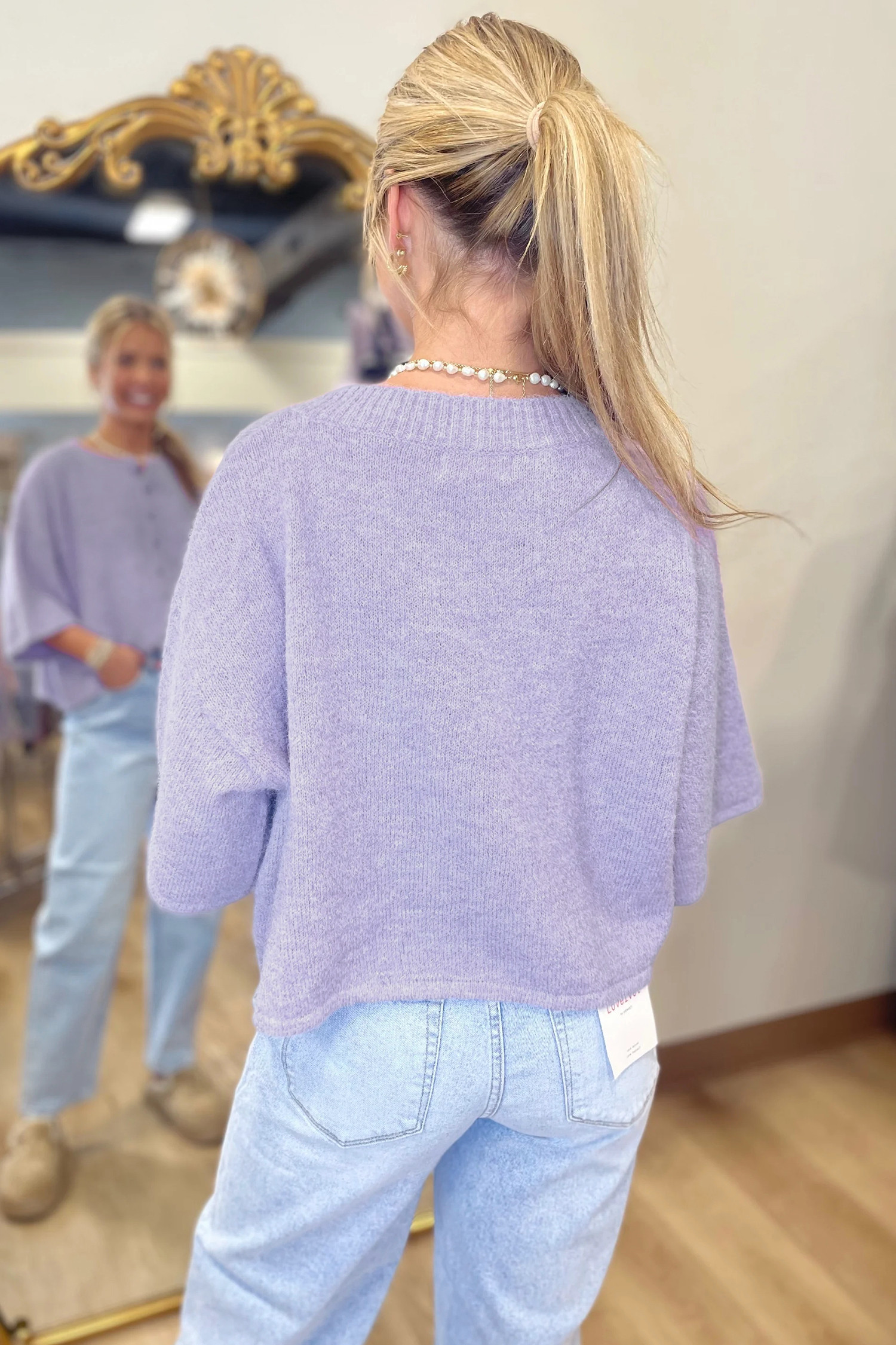 Lavendula 3/4 Sleeve Boxy Knit Button Down Sweater Cardigan