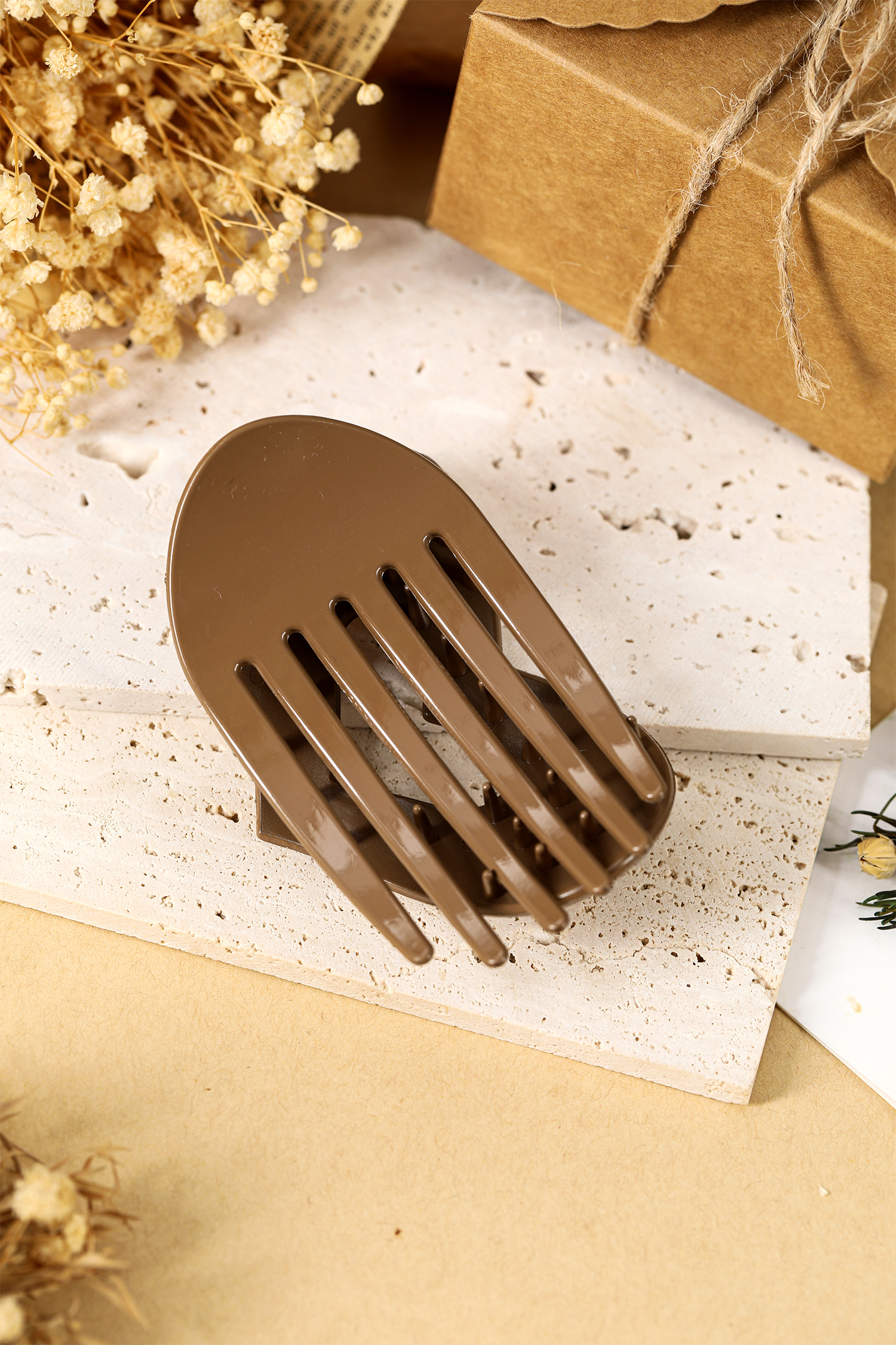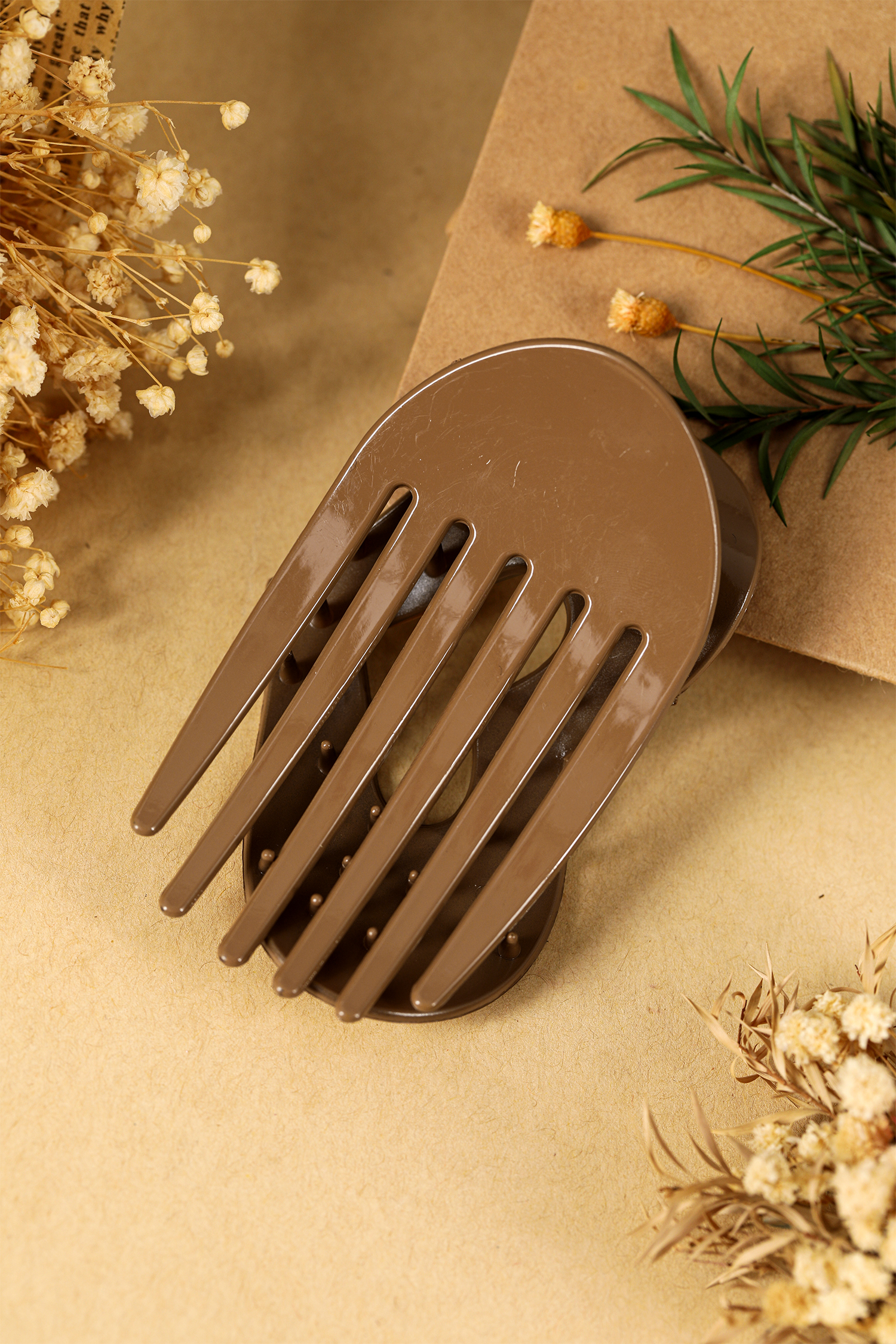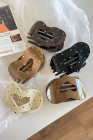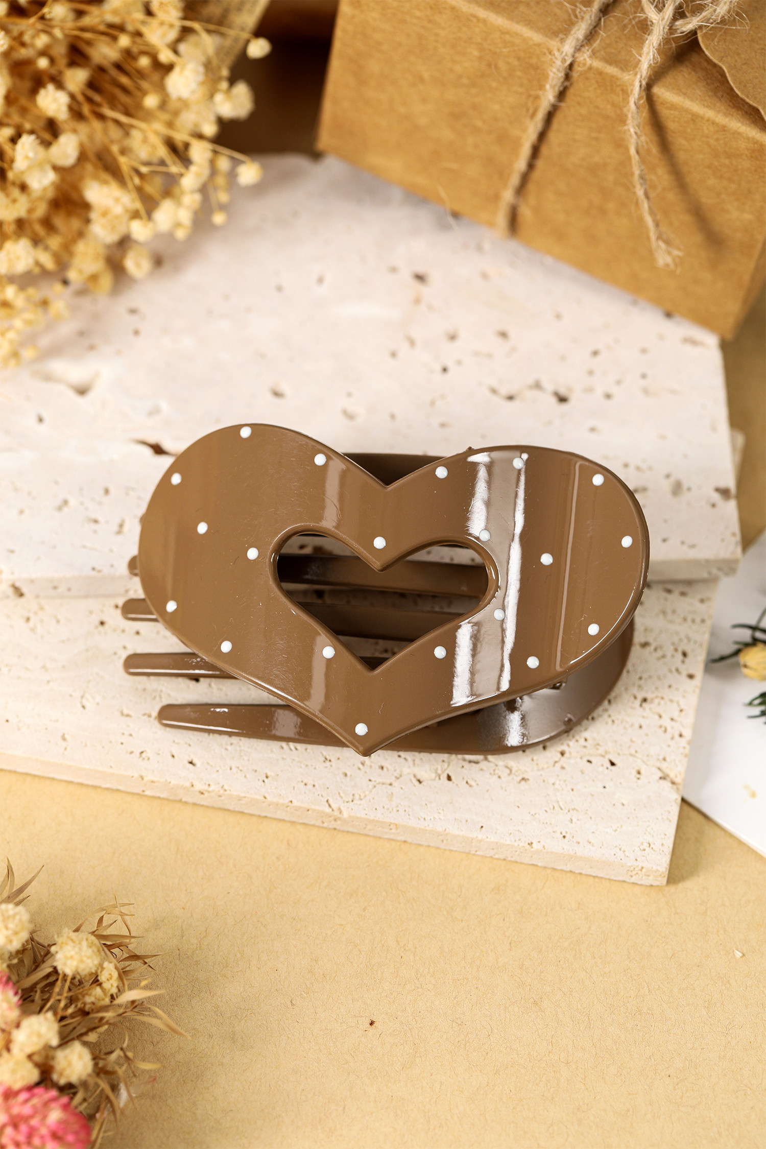 Light French Beige Polka Dot Arched Heart Hair Claw Clip