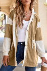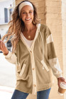 Light French Beige Waffle Contrast Knit Color Block Patchwork Button Front Oversize Hoodie