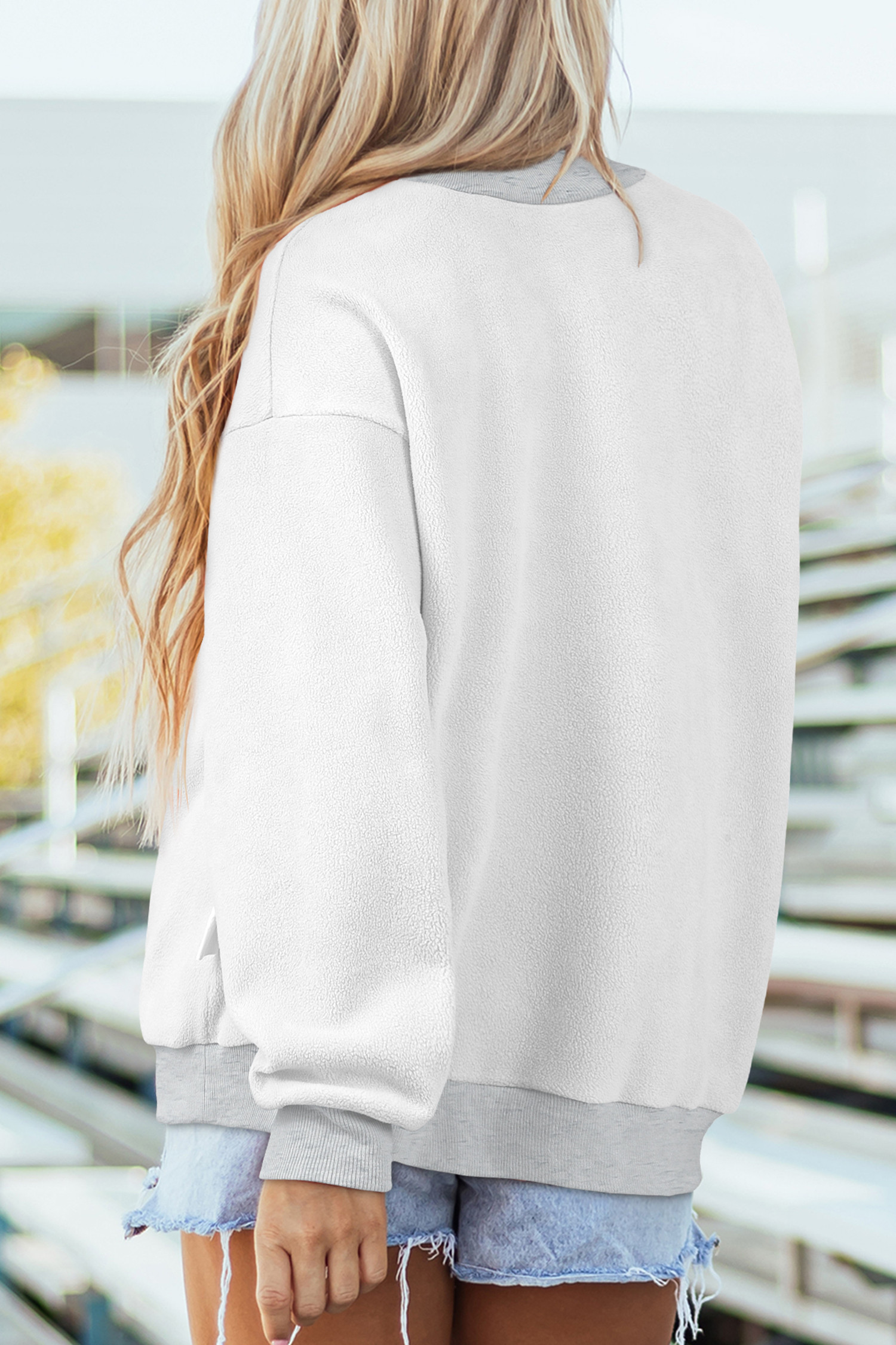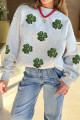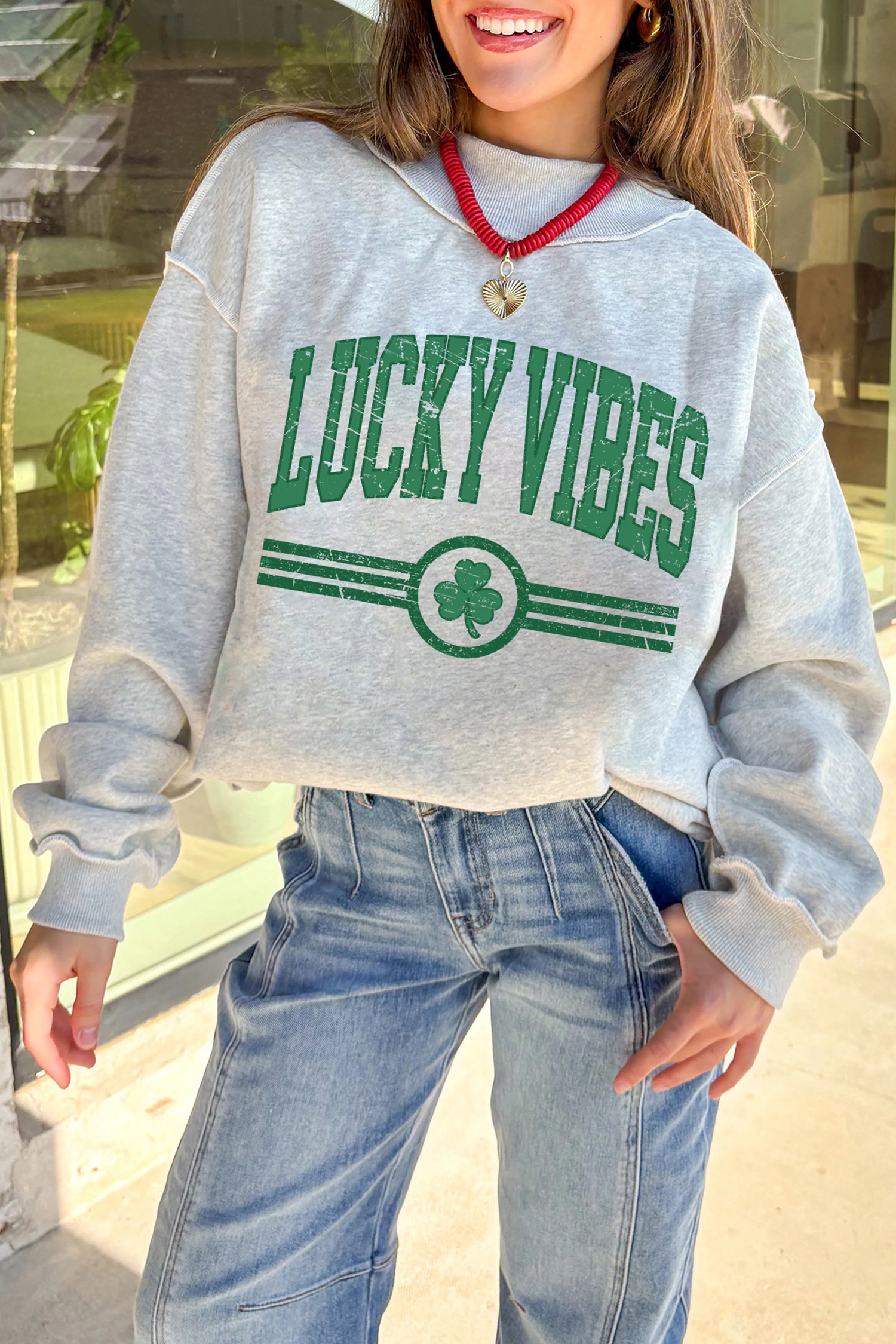 Light Grey LUCKY VIBES Retro Clover Print Reversible Sweatshirt