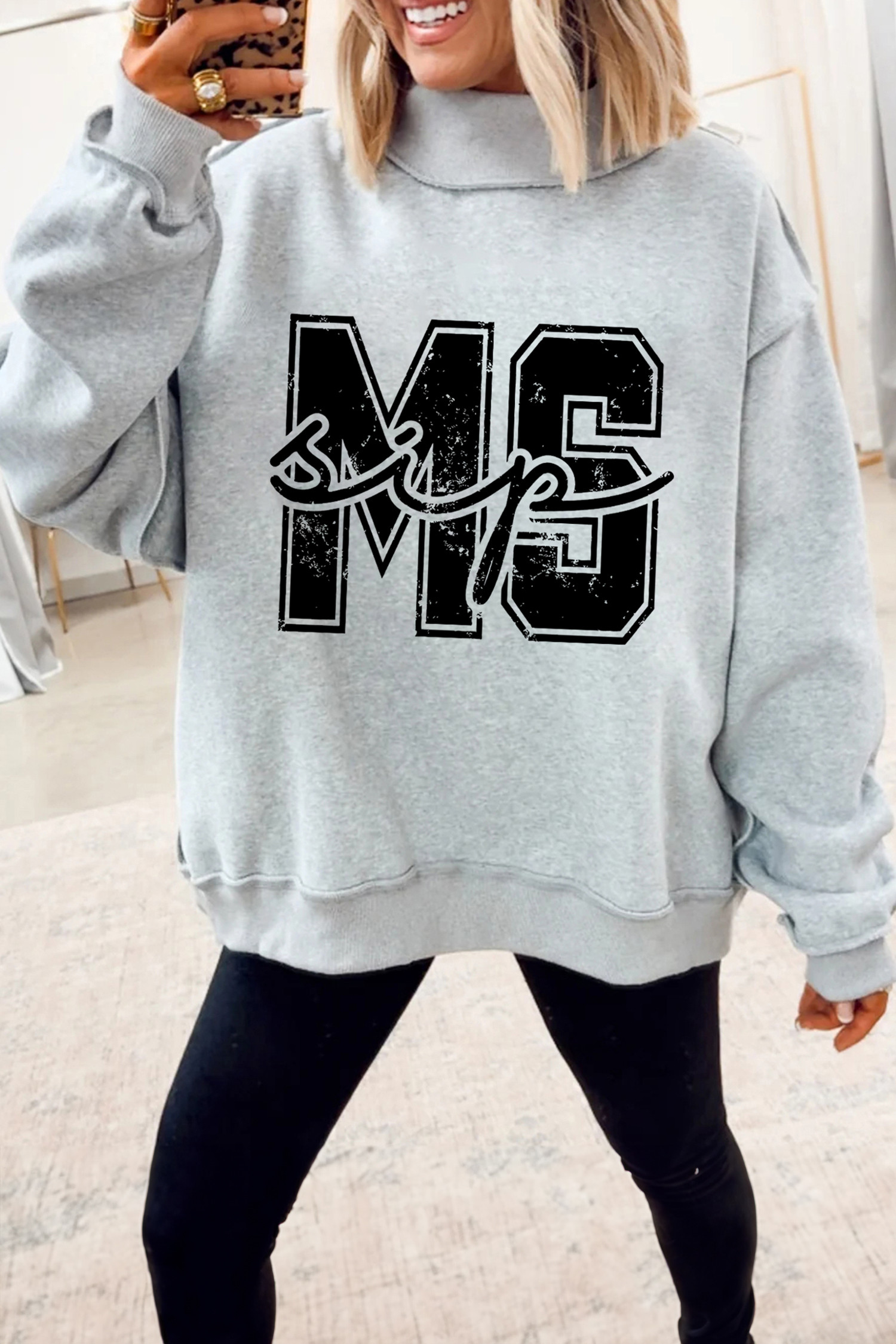 Light Grey MS MISSISSIPPI Double Side Printed Mock Neck Reversible Sweatshirt