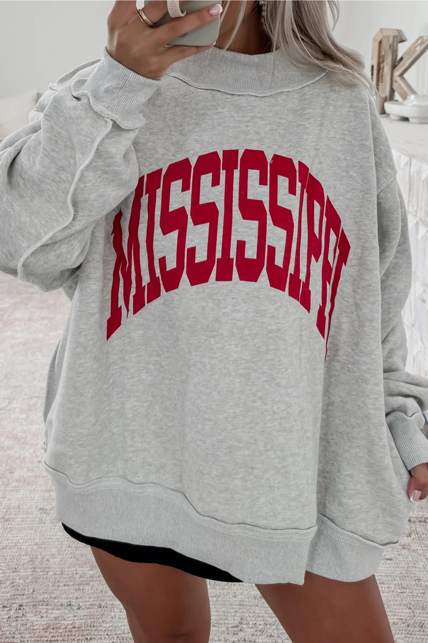 Light Grey MS Reversible Printed Ribbed Patchwork Mock Neck Sweatshirt