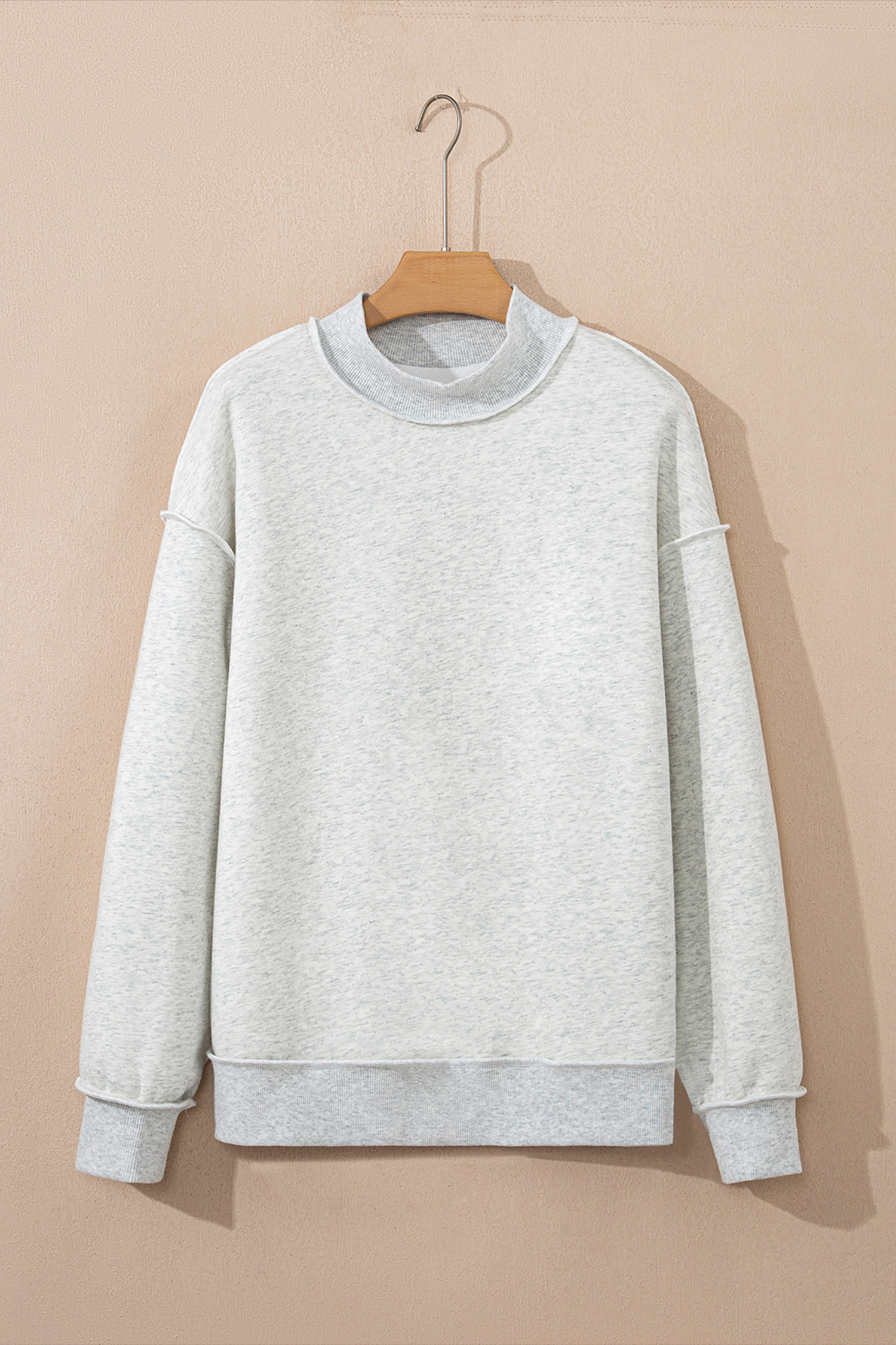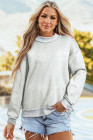 Light Grey Oversize Drop Shoulder Reversible Mock Neck Sweatshirt